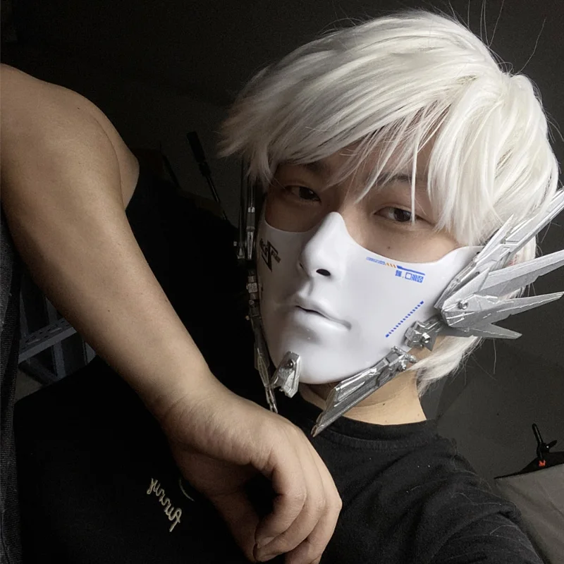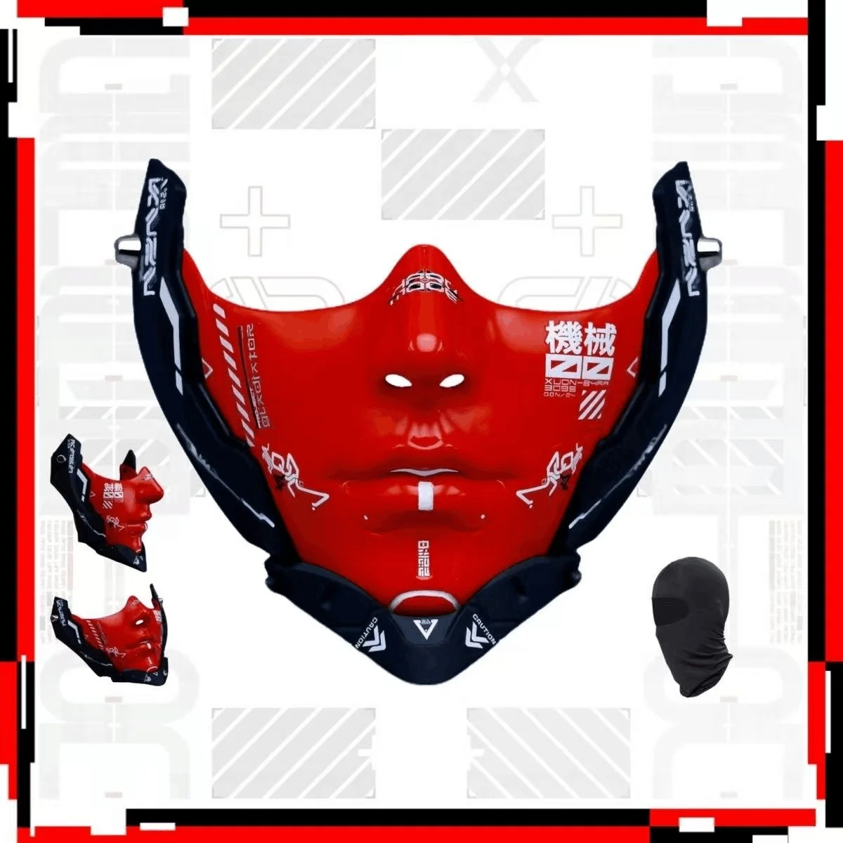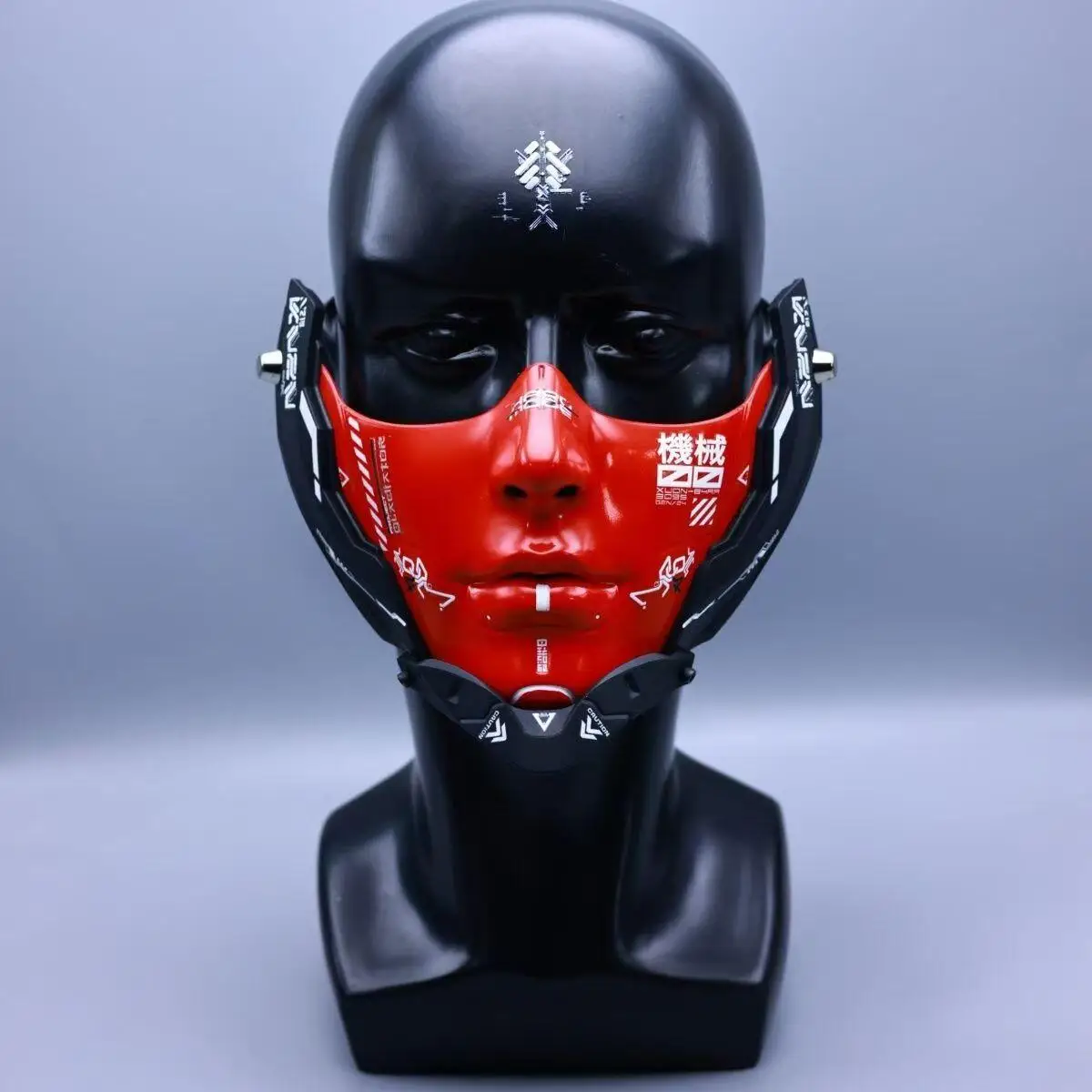 Future Technological Functional Style Mechanical Punk Face Mask Man Woman Halloween Mask Cosplay Costume Red White Face Guard
