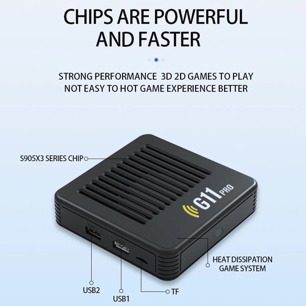 5. Enhanced Gaming Performance: The G11 Pro, powered by the S905X2 chip, ensures smooth gameplay and rapid loading times. Our HD video game console allows players to search and customize their favorite games, as well as download new ones, complete with two wireless controllers for shared retro gaming fun.
