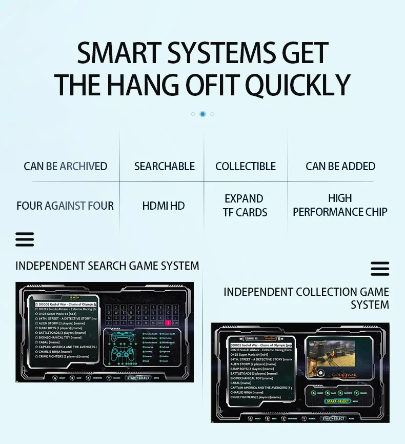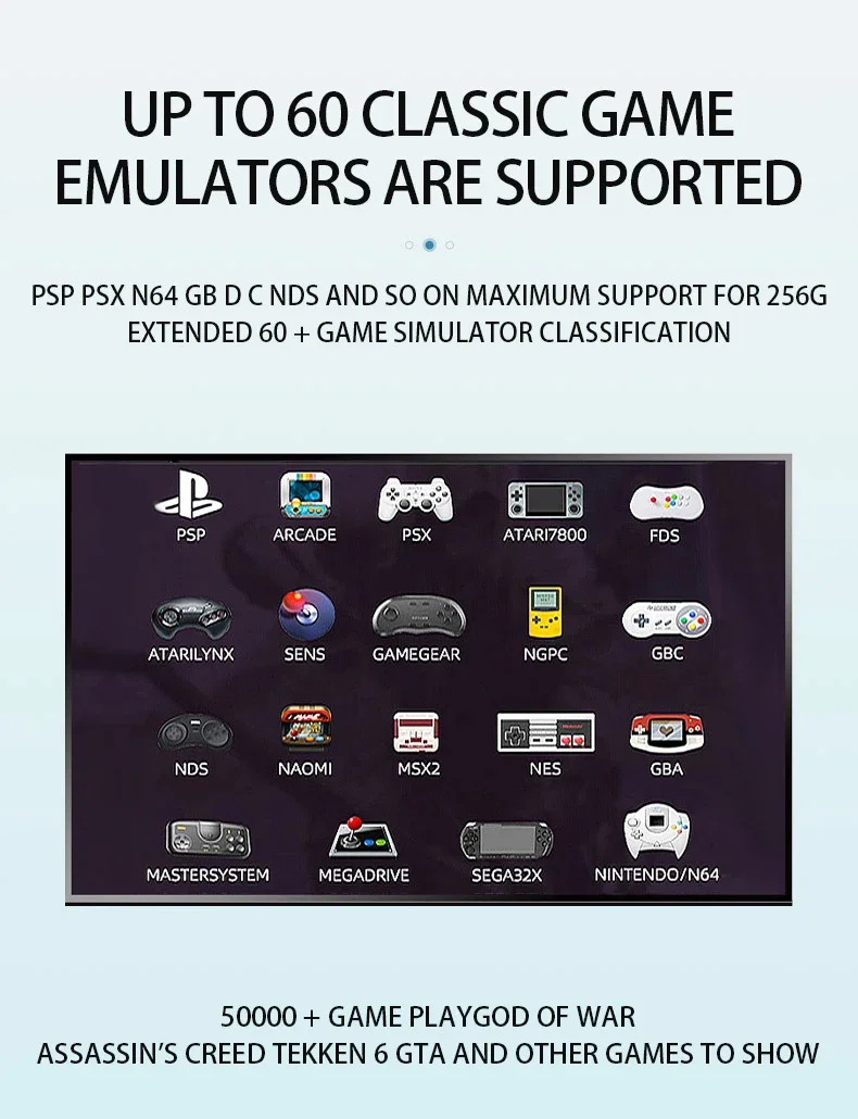 β’ Versatile Game Compatibility:Compatibility with a wide range of classic gaming systems including FC, SFC, NEOGEO, PSP, PS1, GG and GBA means you can enjoy endless hours of fun with your favorite retro games anytime, anywhere.