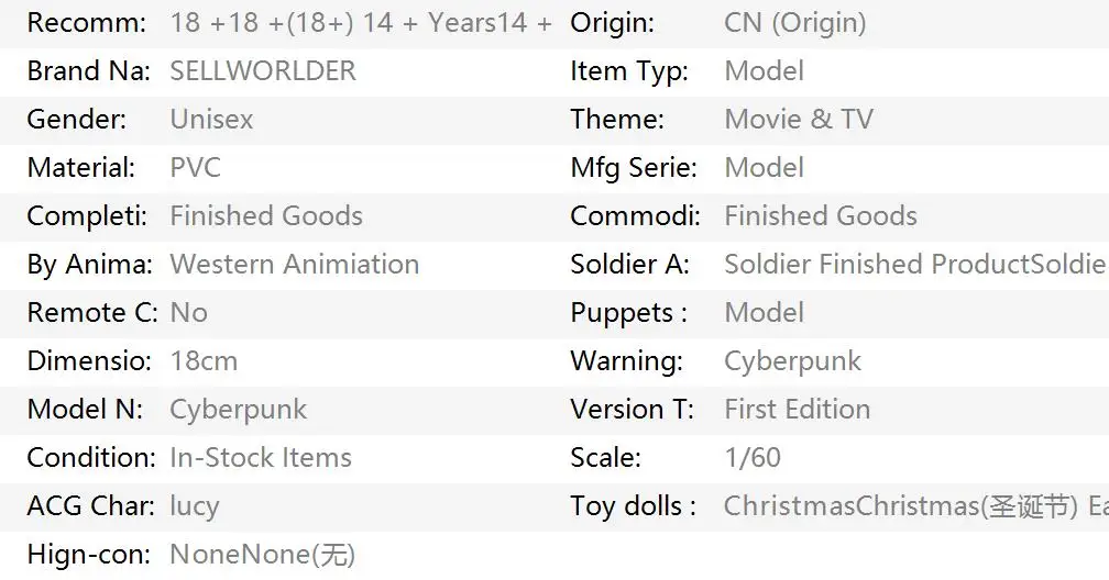 Game Cyberpunk Lucy Girls Action Figure Toys 18cm