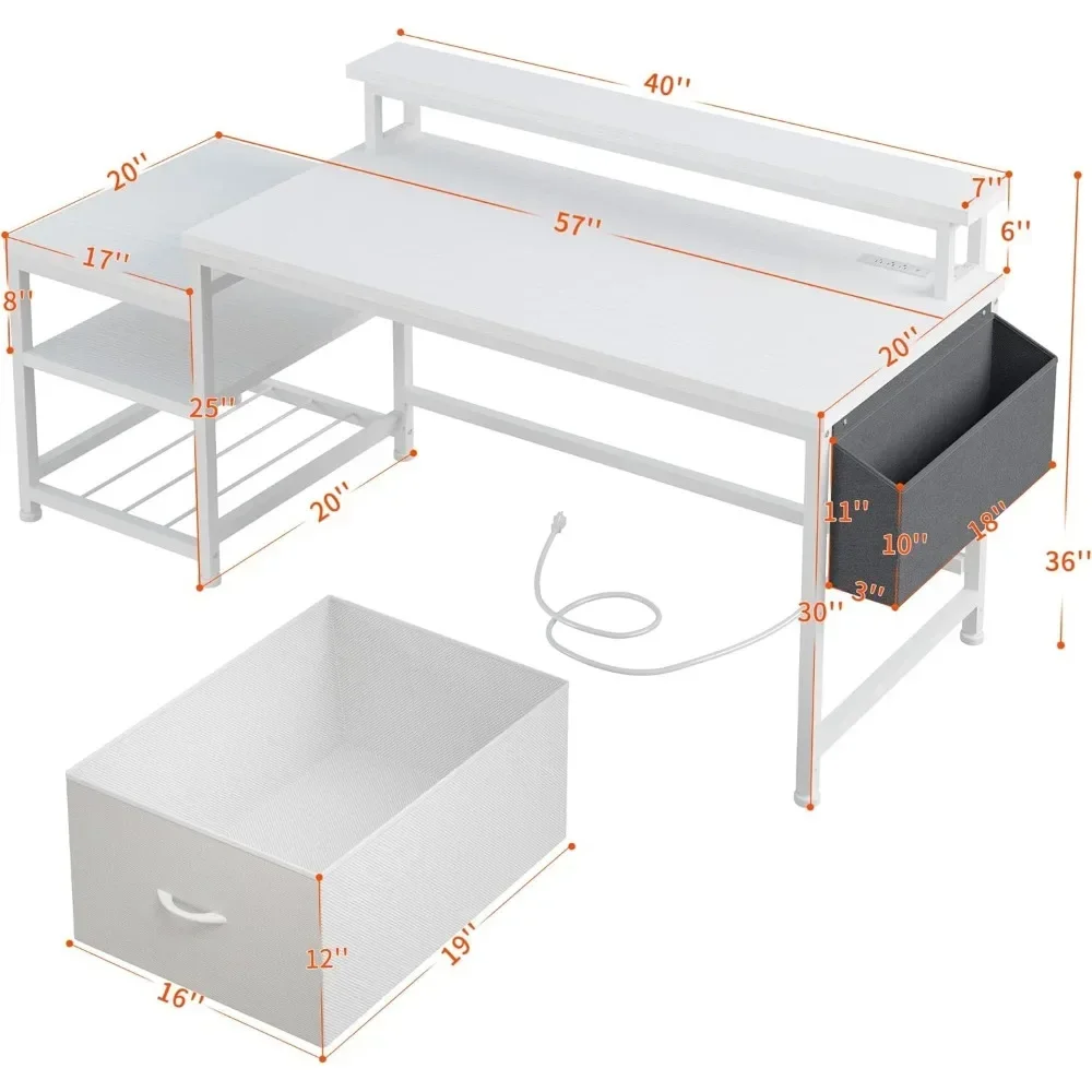 Desk with FABRIC File Cabinet:Put your letters /A4 sized documents, office or school supplies, gaming equipment in the computer desk with drawers: Open shelves and side pockets allow you to place printers and store your small objects.This desk with storage space keeps your desk always organized.