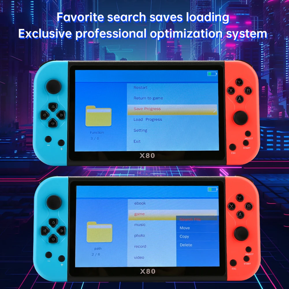 1. Large Screen: With its 7-inch large screen, retro video game console player provides a wider gaming display, offering a more immersive gaming experience.