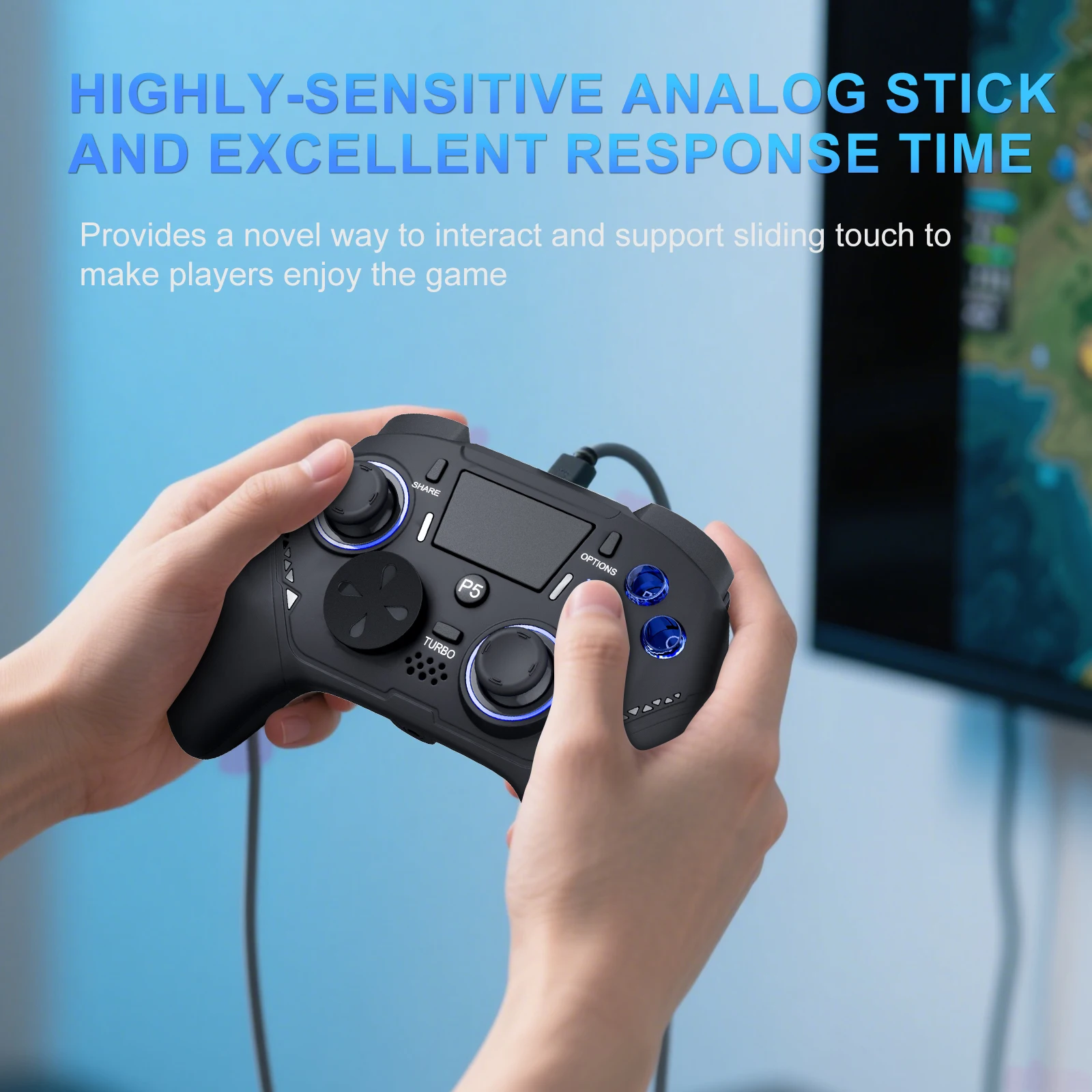 GAMINJA P516F Wired Game Controller For P5/Android/PC Transparent RGB Light Crystal Buttons Hall Sensor Joystick Ergonomic