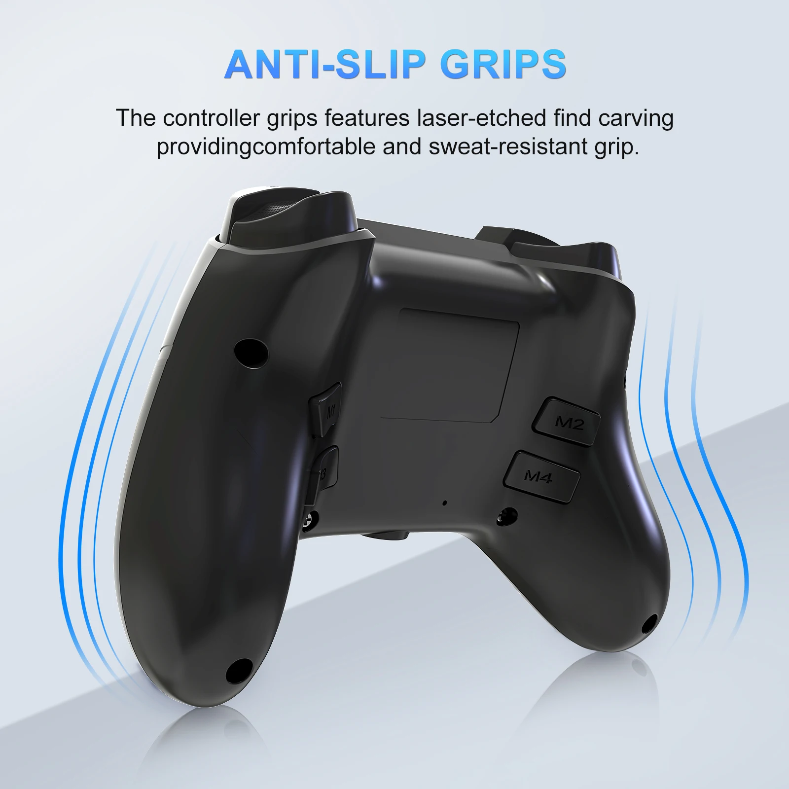 The controller grips features laser-etched find carving providing comfortable and sweat-resistant grip.