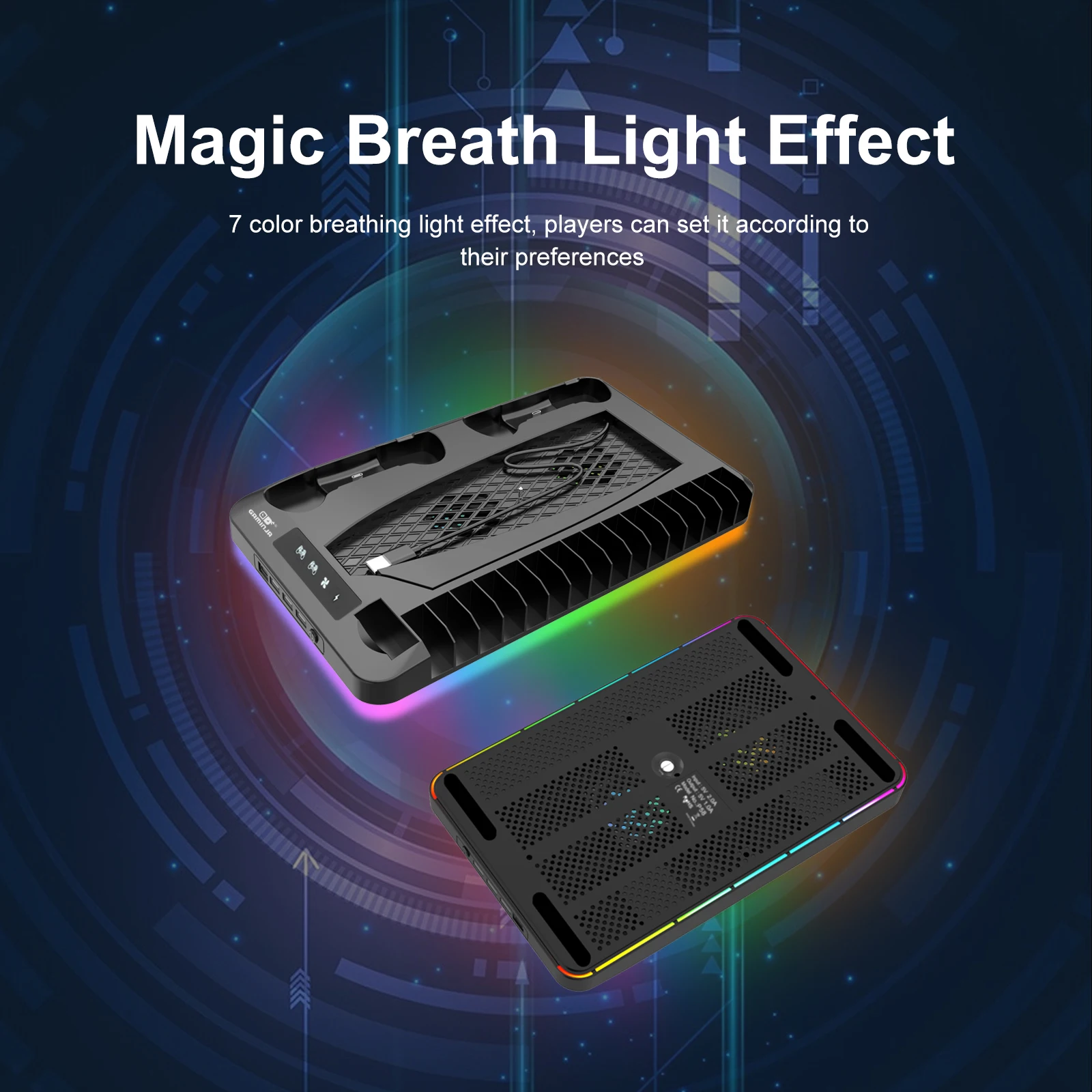 GAMINJA RGB Cooling Base Gamepad Charging Stand For PS5 Console Holder Headset Hook Game CD Storage Rack For PS5 Disc & Digital