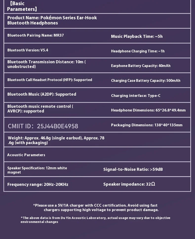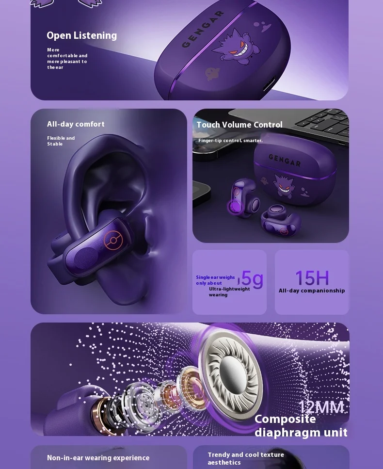 Product Name: Pok é mon Geng Ghost Ear Clip Bluetooth Earbuds