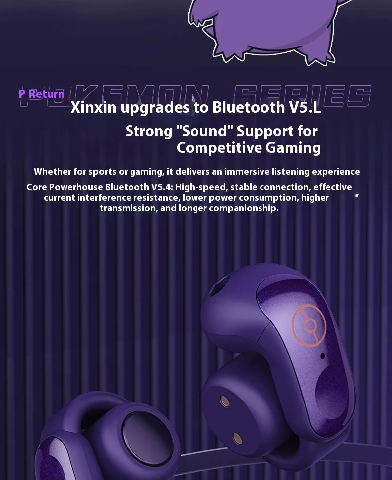 Gengar PokéMon Bluetooth Headset Ear Clip Hifi Stereo Wireless Game Sports Earbuds Long Battery Life Trendy Anime Gift