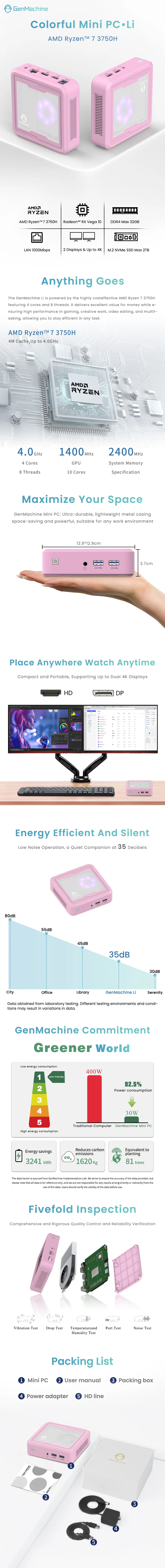 GenMachine New Mini PC AMD 3750H 16GB+256GB CPU Windows 11 Ryzen DDR4 USB WIFI 5 1000M AMD NUC Gaming Diy Gaming Computer Ordena