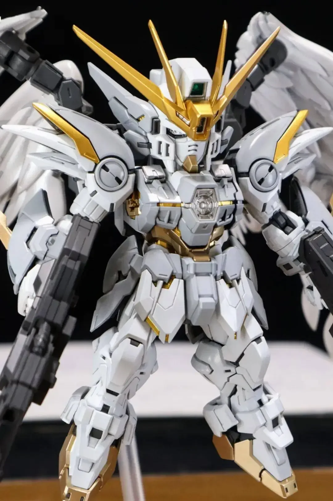 GL MGSD Wing Zero EW Snow White Version Angel Feather Drop Mech Assembly Model Kit Action Figure Desktop Decoration Doll Boy Toy