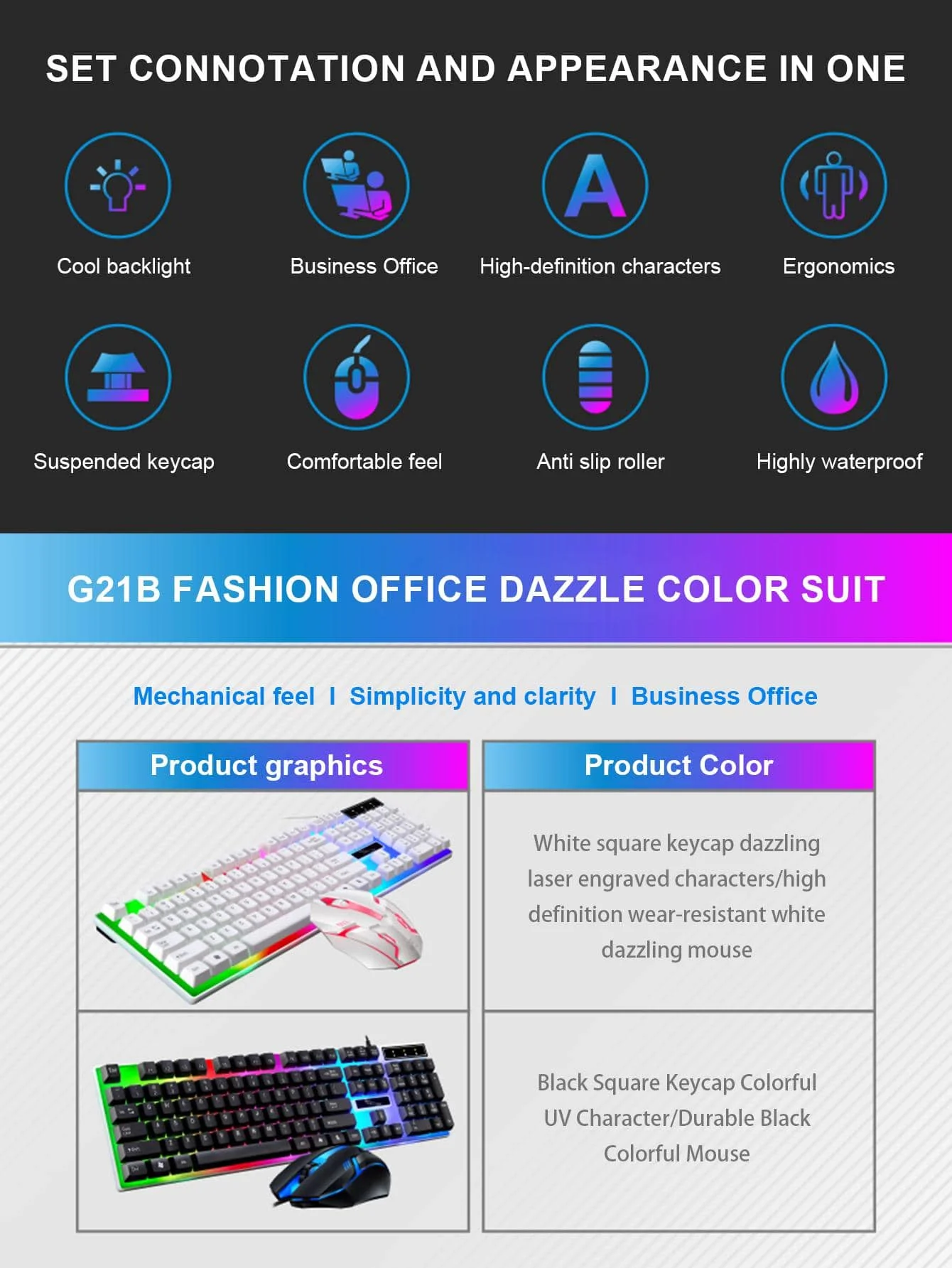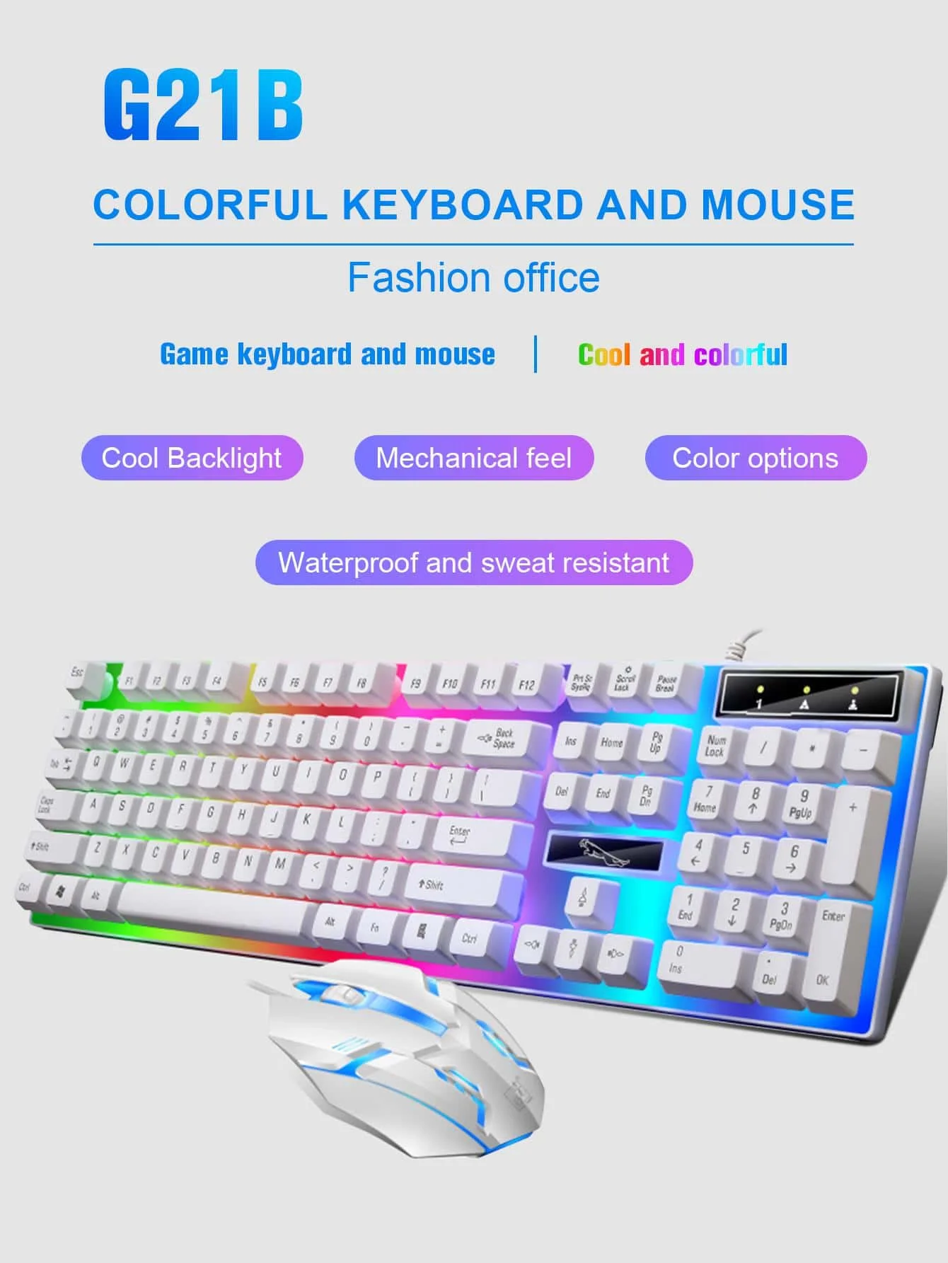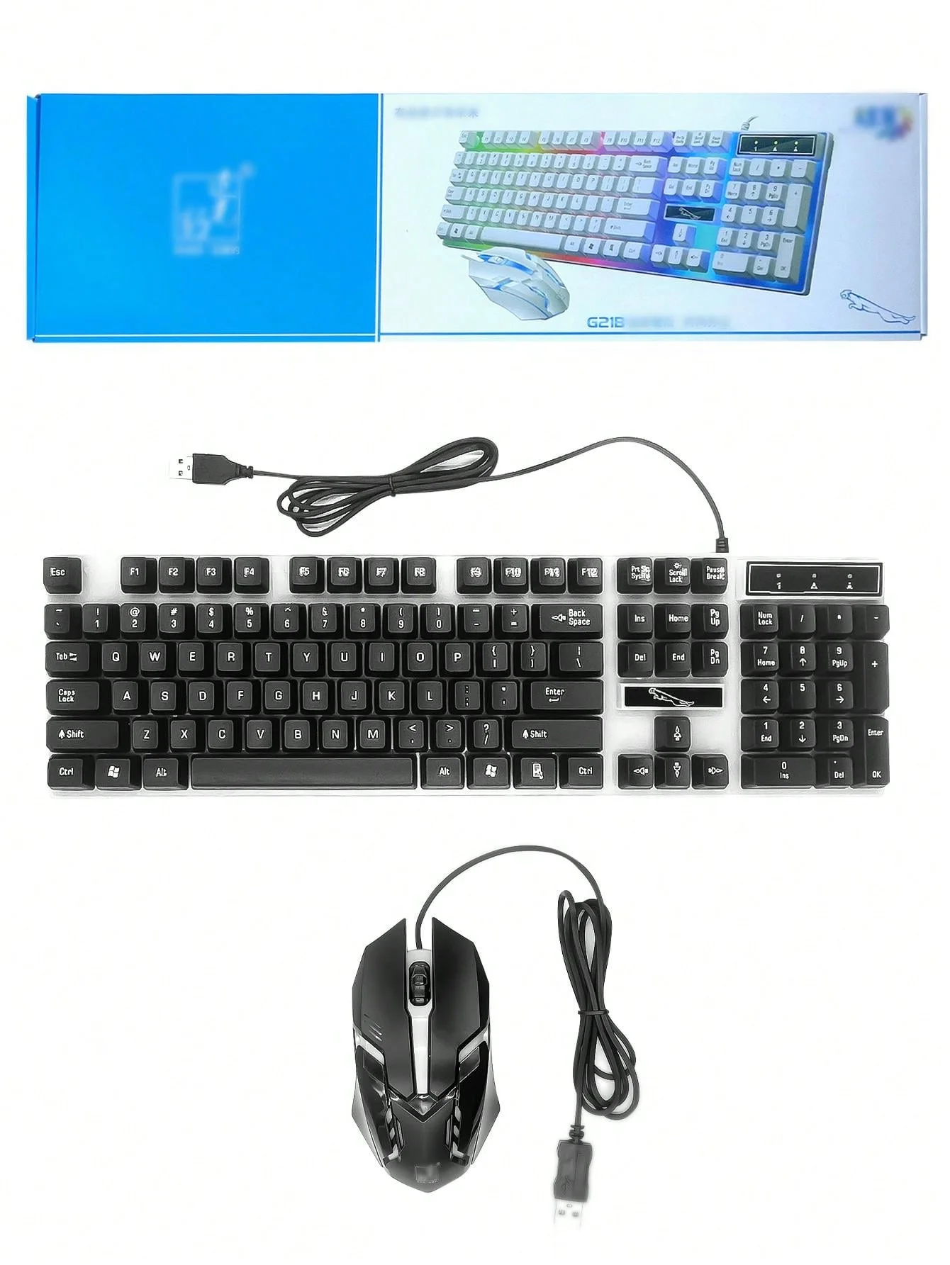 Glow Mechanical Feel Wired Keyboard and Mouse Set, ergonomic design, suitable for both gaming and office use