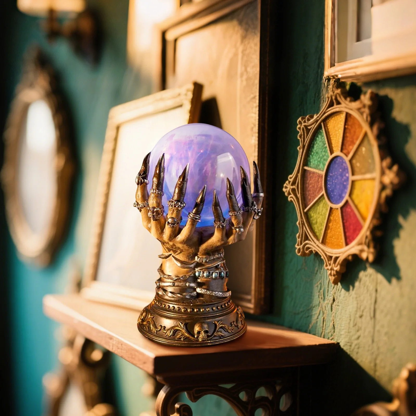 Glowing Deluxe Cellular Crystal Ball Luminous Magic Witch Hand Electrostatic Plasma Light Serve Skull Finger Halloween Decor