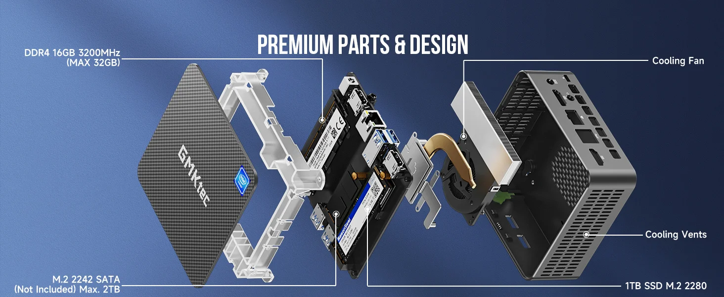 Storage: PCIe 3.0 M.2 2280 NVMe (Expansion: M.2 2280 PCIe Max. 2TB/ M.2 2242 SATA Max. 2TB)