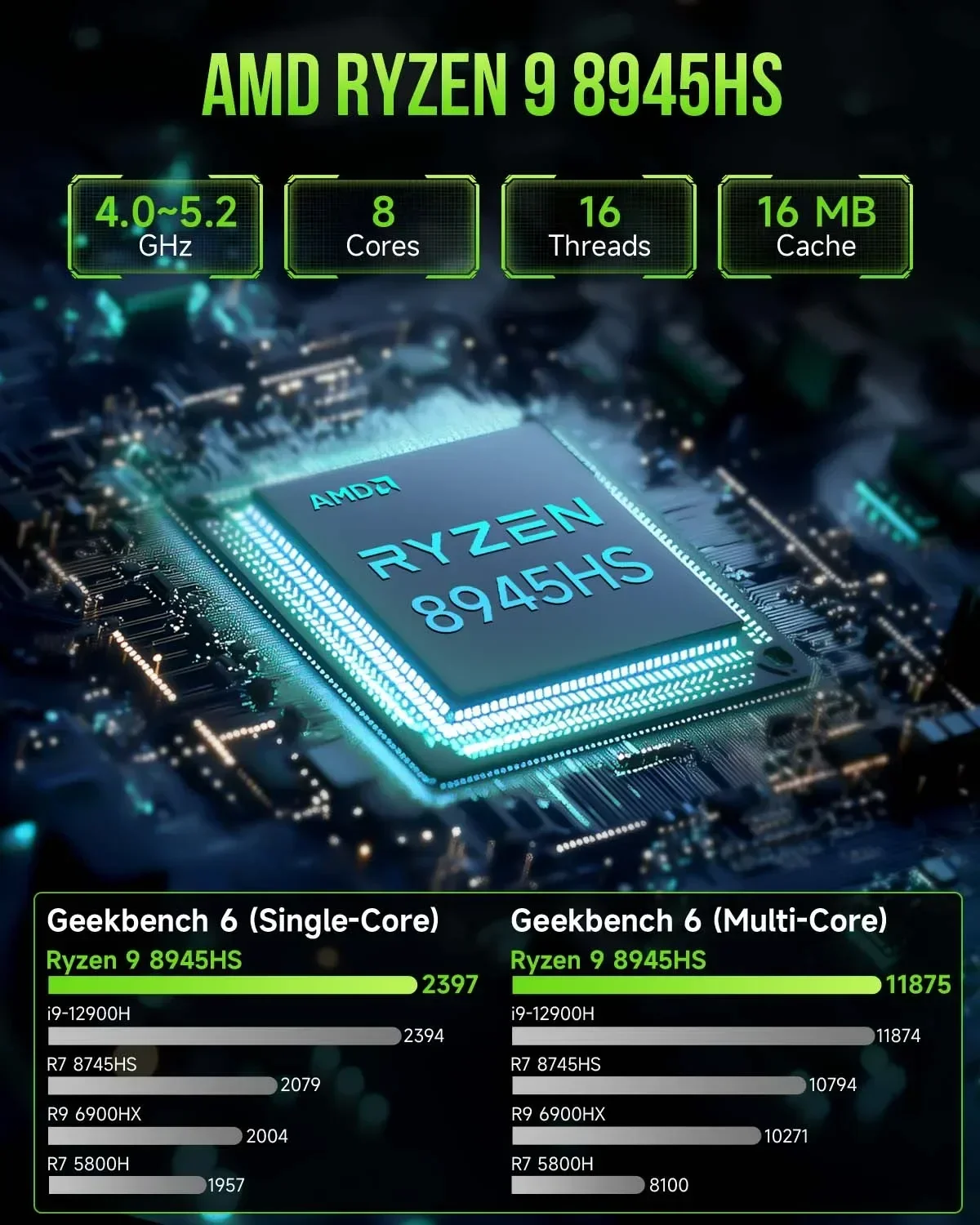 GMKtec K11 Mini PC, Ryzen 9 8945HS, Radeon 780M,Windows 11 Pro, 32GB DDR5,1TB SSD, WIFI6 BT5.2,High-Speed Gaming Desktop