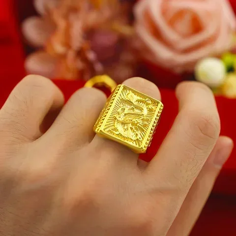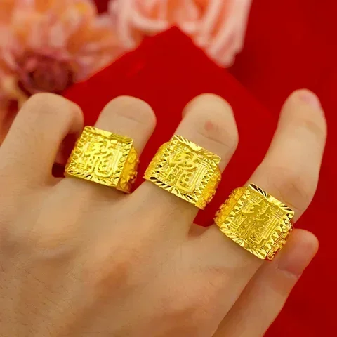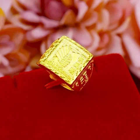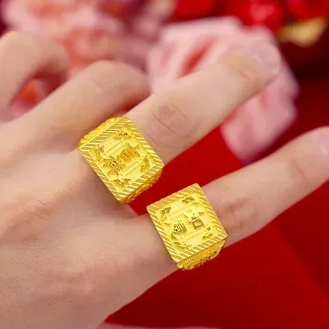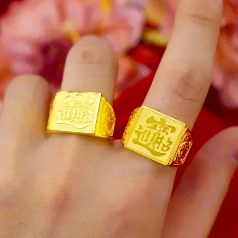 Gold shop with 999 24k real gold ring men's fortune adjustable 24 K 5D real gold ring smooth sailing domineering male ring