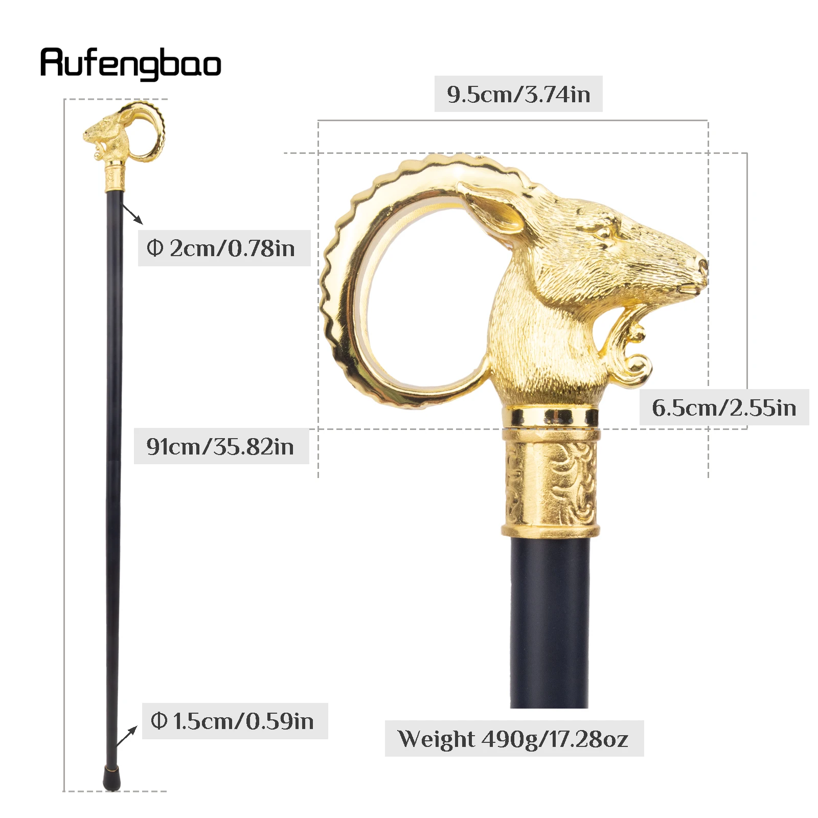 Golden Goat Sheep Animal Single Joint Walking Stick with Hidden Plate Self Defense Fashion Cane Cosplay Crosier Stick 91cm