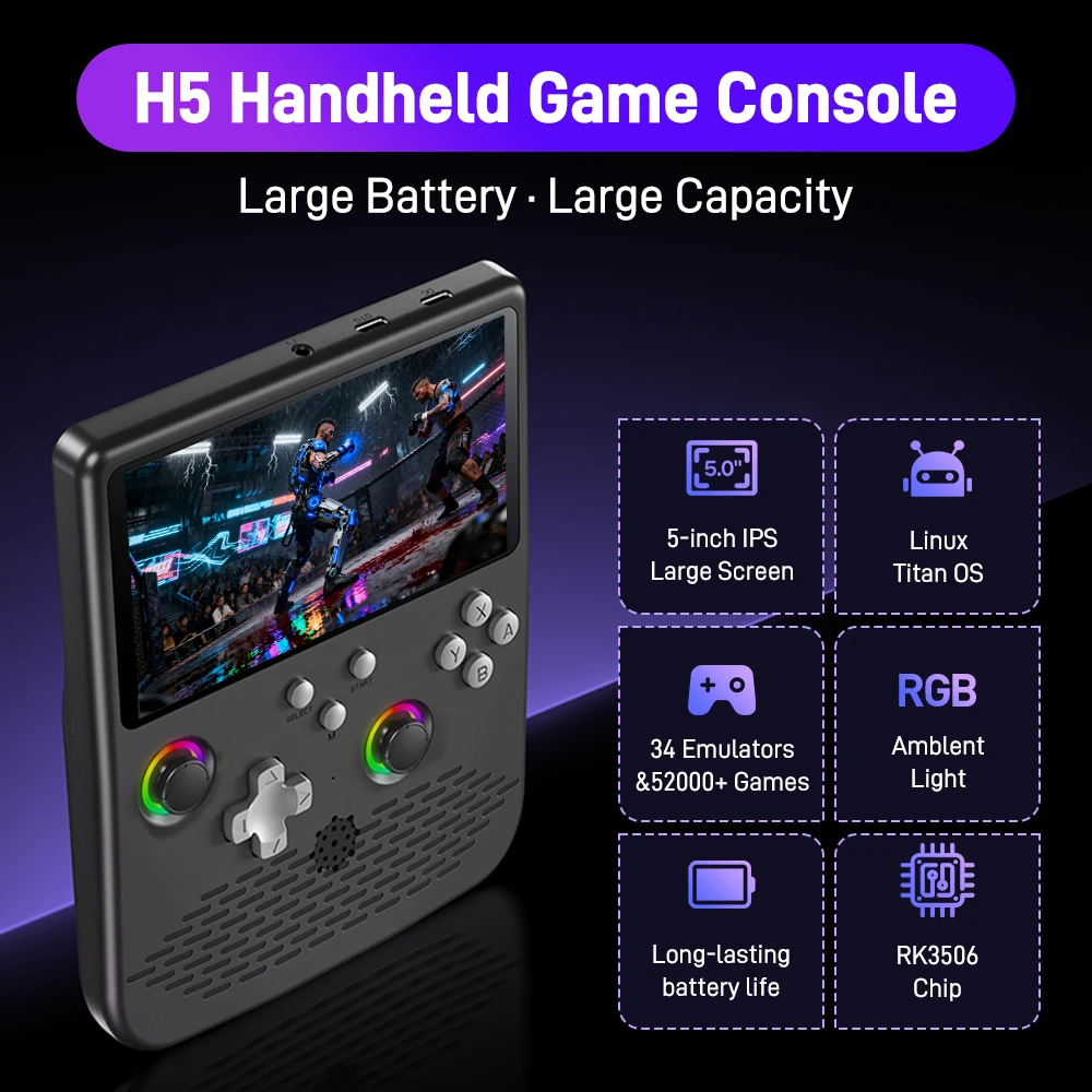 H5 Handheld Video Game Console 5-inch IPS Screen 4000mAh Portable Game Player with 52000+ Retro Games