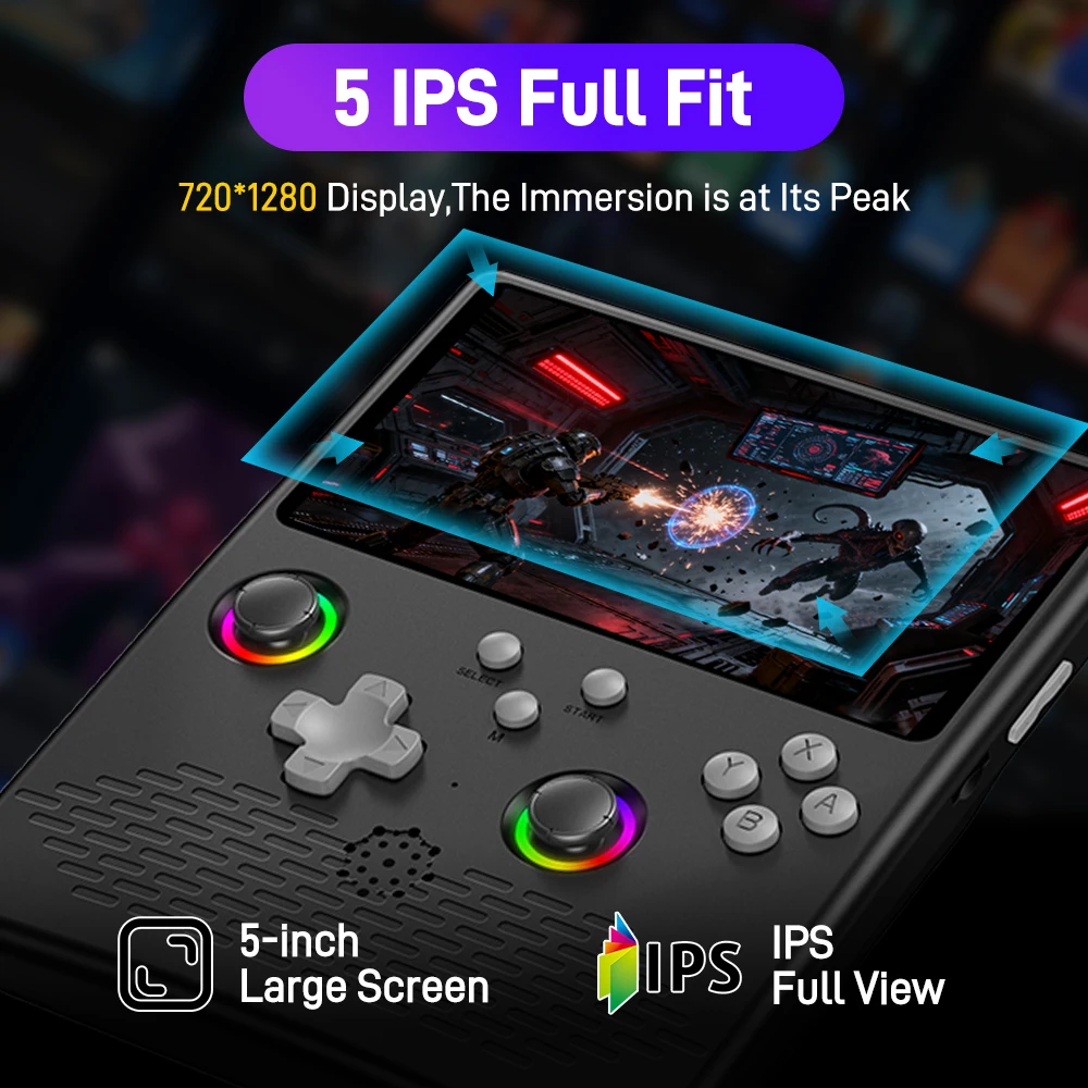 This retro handheld game console features a 5-inch high-definition IPS screen with a clear 1280*720 pixel resolution, presenting vivid and realistic graphics for retro game enthusiasts and bringing you an unprecedented handheld gaming experience.