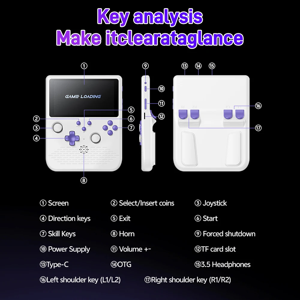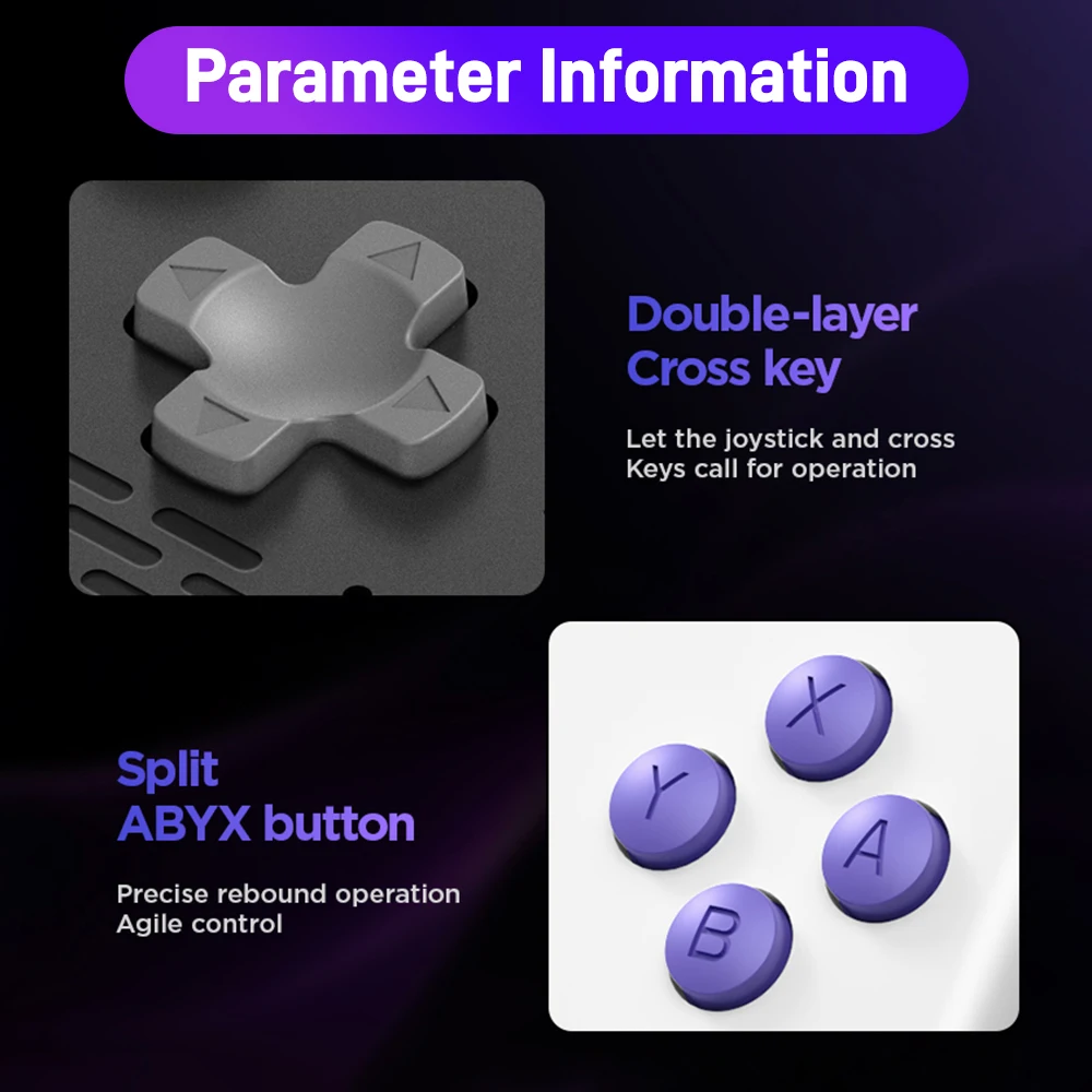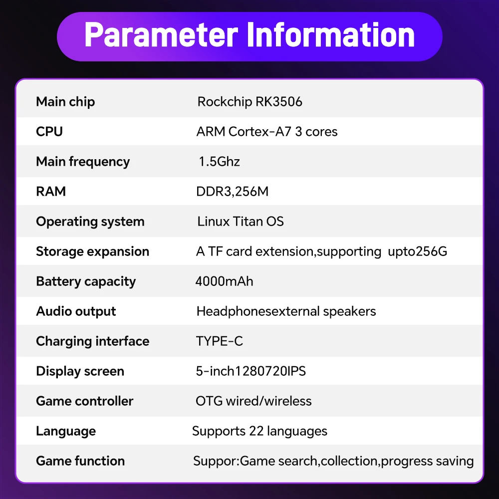 The H5 handheld game console is equipped with a high-performance RK3506 chip, featuring a Cortex-A7 3-core architecture, quickly responding to your needs and injecting powerful performance into classic games.