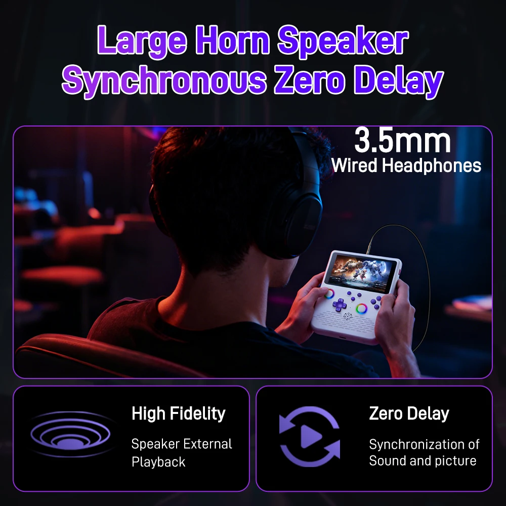 This H5 video game player features a built-in large speaker, ensuring synchronized audio and video with zero latency, providing an immersive audio experience and enhancing the gaming enjoyment.