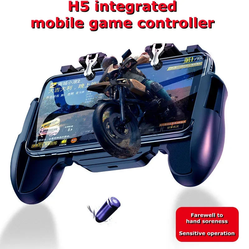 H5 Mobile Phone 4 Fingers Gamepad Controller with Cooling Fan Radiator L1R1 Trigger Joystick for iPhone Android PUBG Game Handle