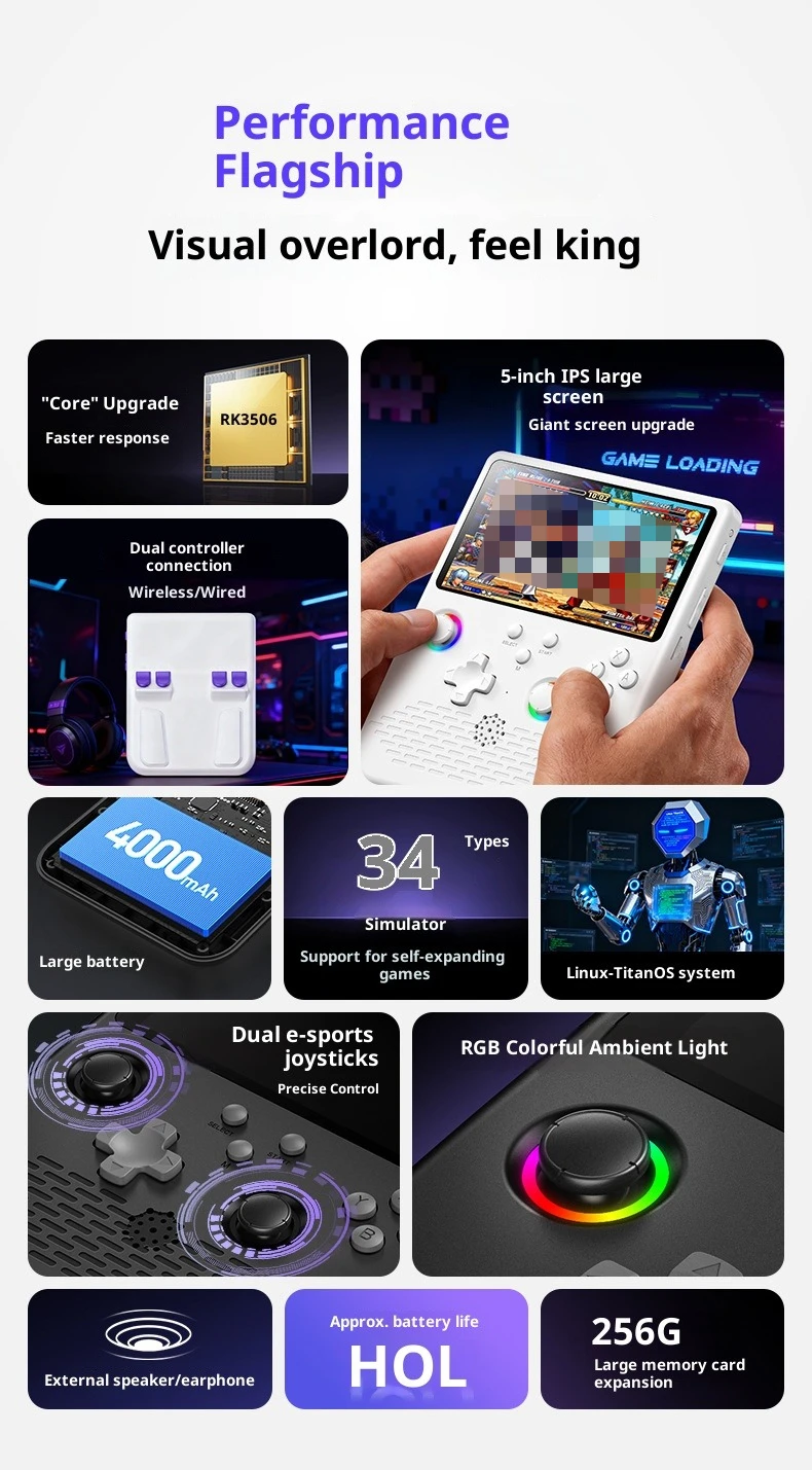 H5 Retro Games Console 4000mAh 5-inch IPS Screen Video Game Console 15000 Games Portable Game Player Supports 34 Simulator