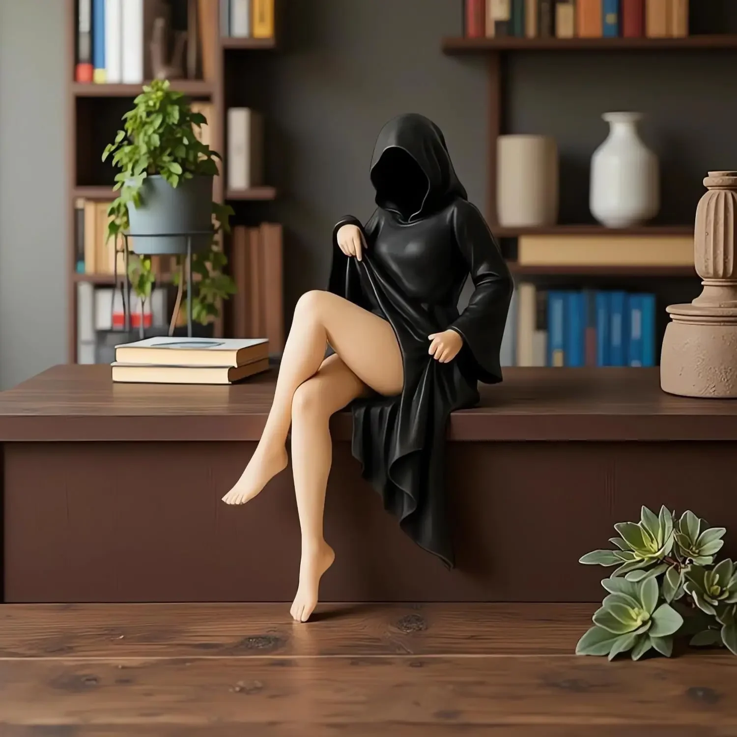 3d Mysterious Statue Gothic Black Robe Queen Figure Bookshelf Sculpture Spooky Sitting Statues Desktop Ornaments Gifts