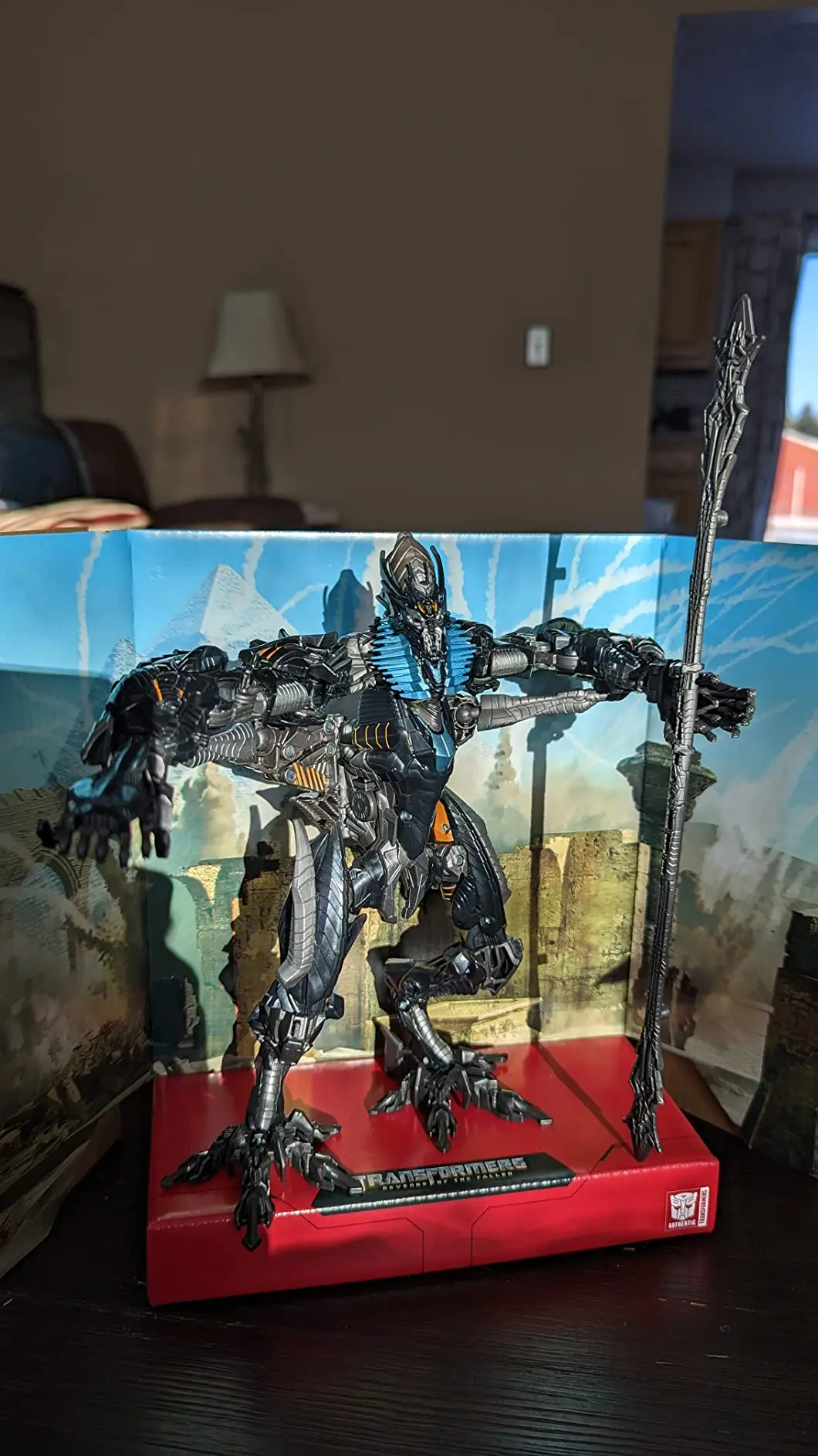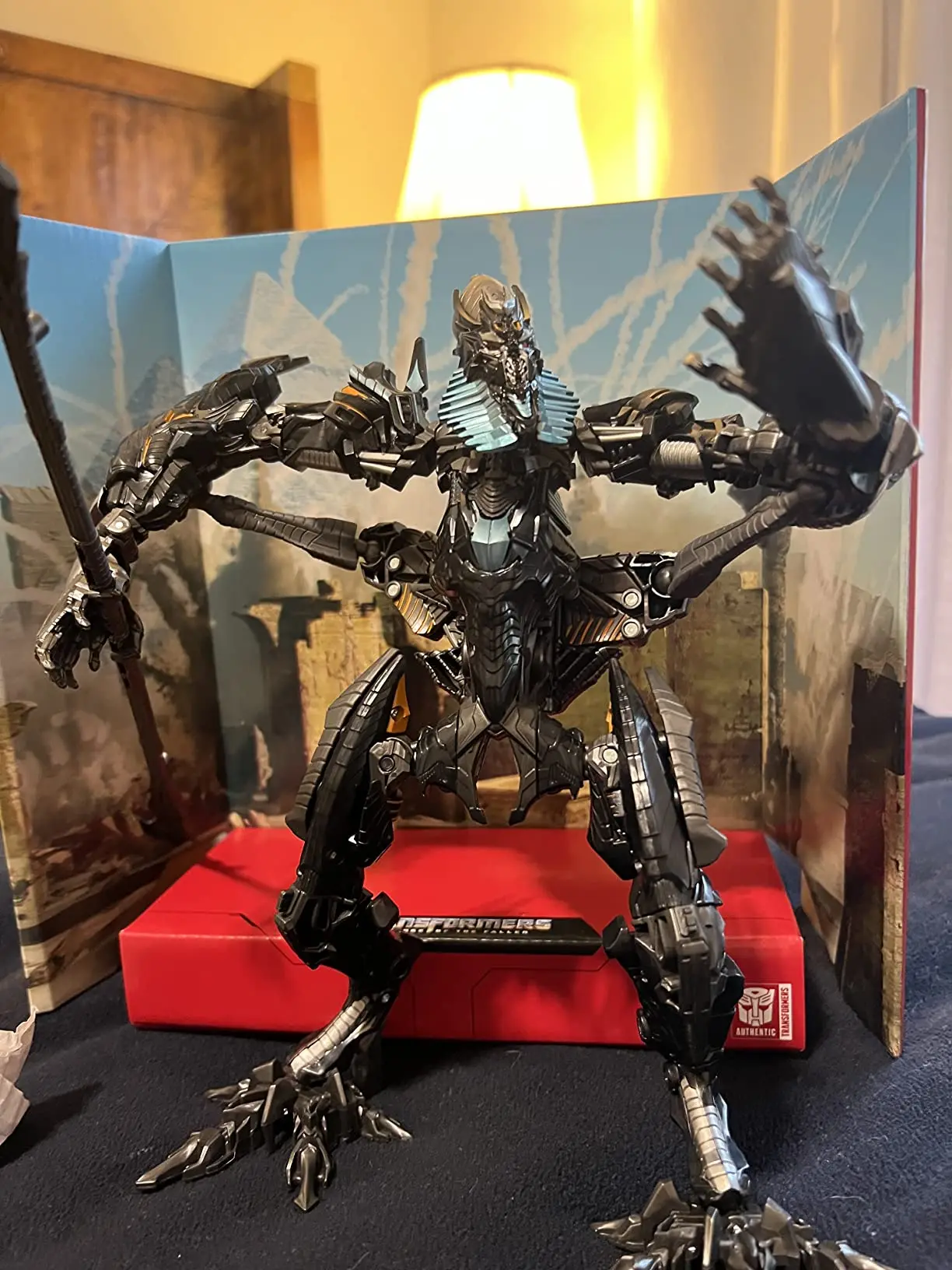 BIG SCREEN INSPIRED: Figure scale reflects the character's size in the world of Transformers: Revenge of the Fallen. Figure, packaging, and removable backdrop are inspired by the iconic Pyramid Desert Battle scene