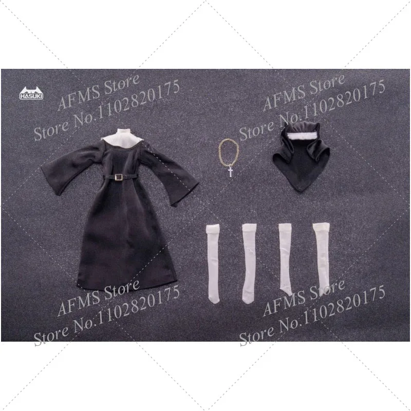 HASUKI 1/12 Scale Collectible Figure Cute Nun Fuede Dress Hat Necklace Clothes Set Fit 6Inch Women Soldier Action Figure Body
