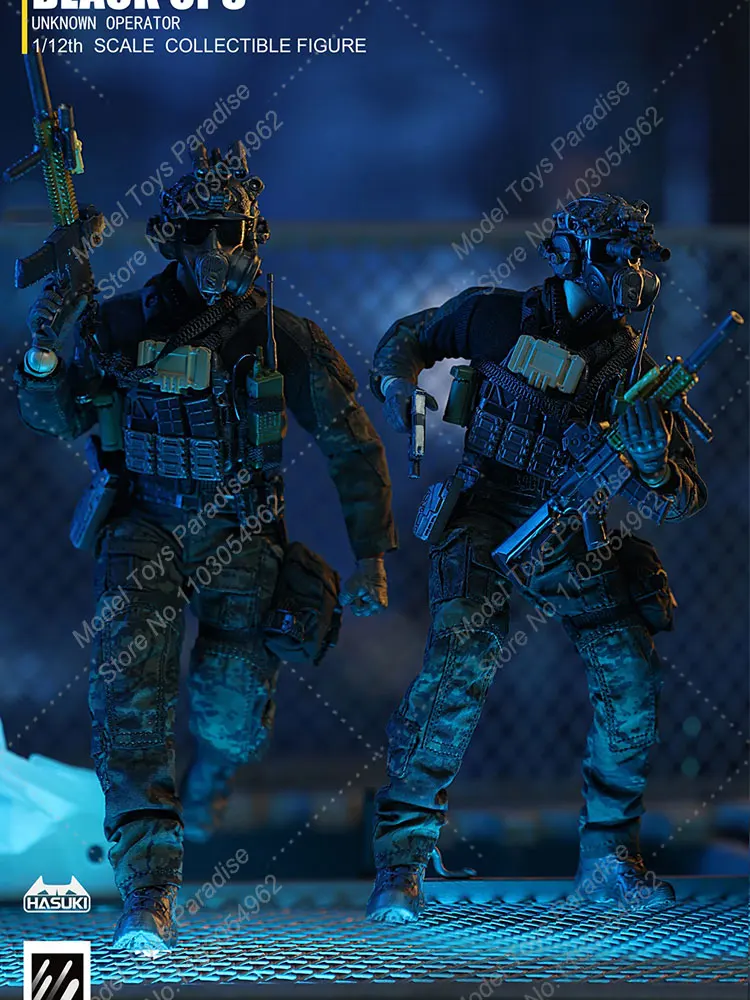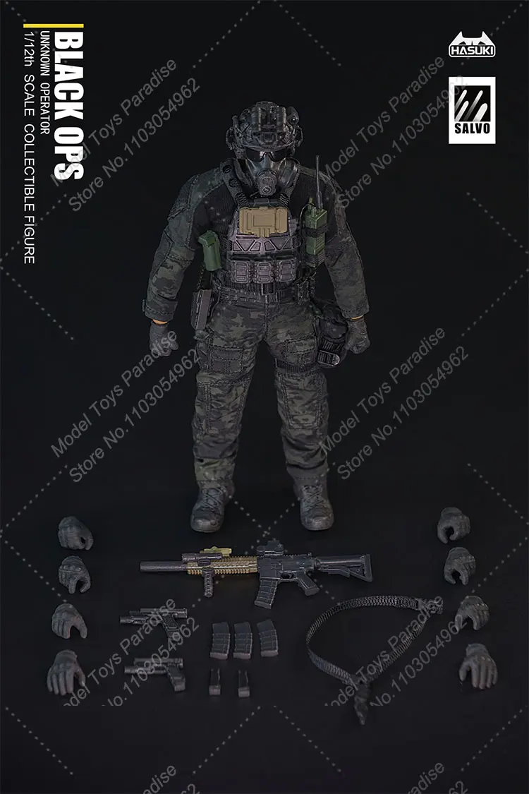 HASUKI SA01 1/12 Men Soldier Special Forces Black Ops Warrior With Equipment Package Full Set 6inch Action Figure Collection