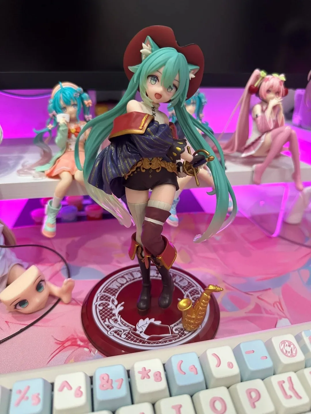 Hatsune Miku Desktop Cute Action Figure Tale Wonderland Miku Puss in Boots Anime Figurine Kawaii Girl Model Toy Adorable Decor