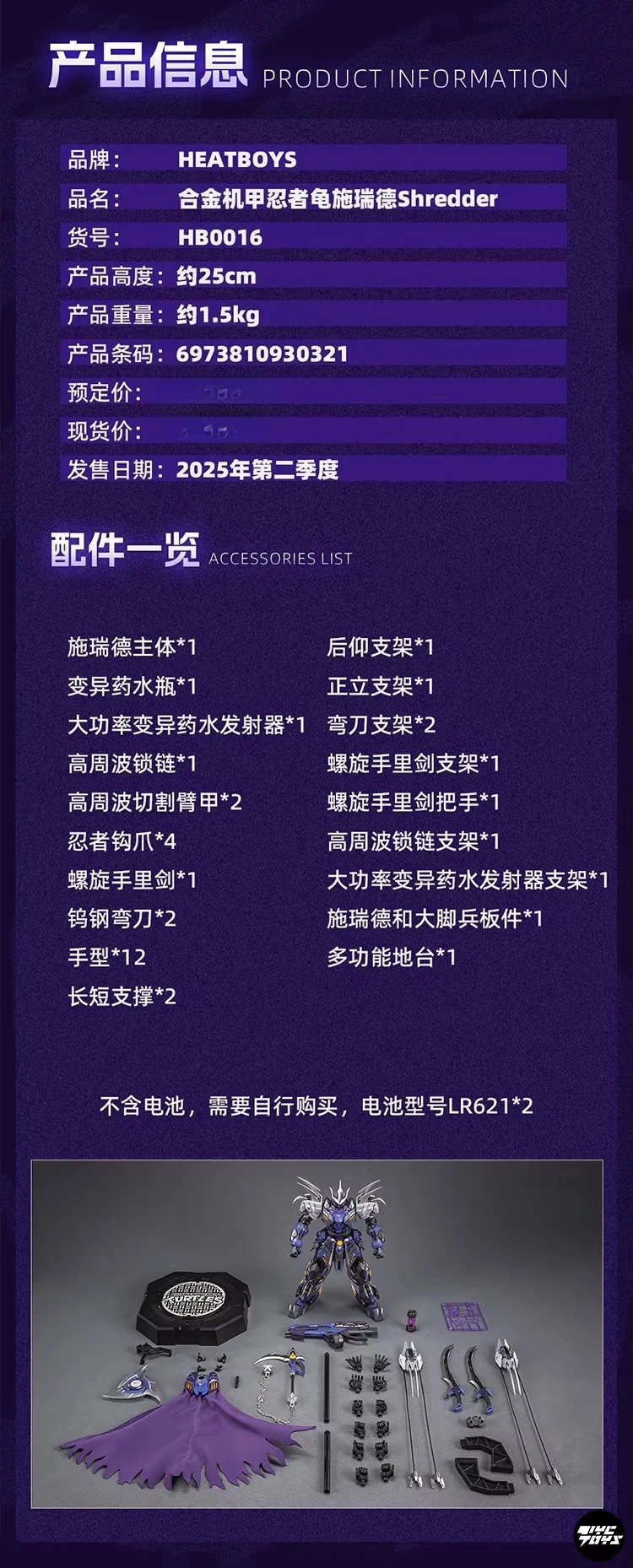 HEATBOYS Teenage Mutant Ninja Turtles Shredder Chinese Mecha Model Kit Action Figure Model Trendy Toys Desktop Doll