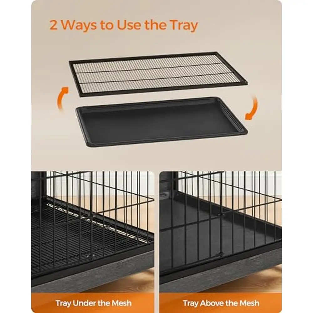 Heavy-Duty Dog Crate Furniture Kennel Double-Door Cage Tray Indoor Use 105lb Stainless Steel Particleboard Modern Home Decor