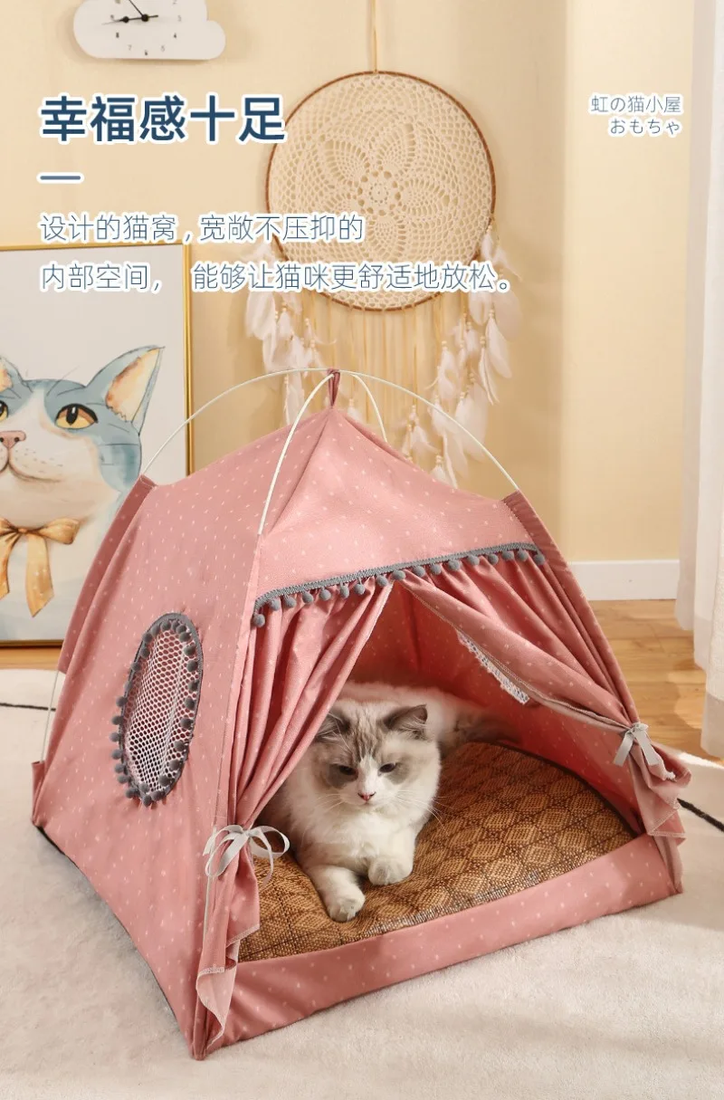 Hiding Cat Tent Semi Closed Nest Bed Portable Indoor Breathable Detachable Cat Tent House Four Seasons Universal Pets Beds