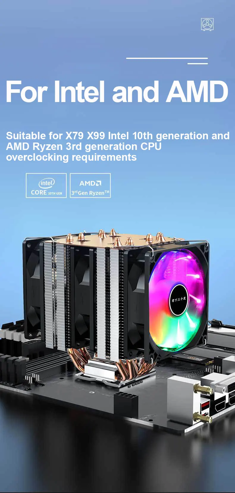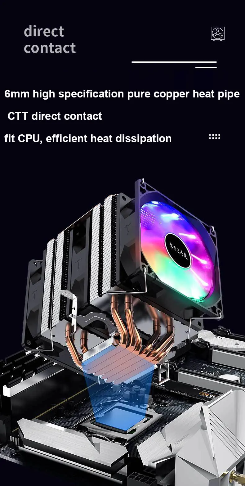 High Quality 6Heat-Pipes RGB 3PIN CPU Cooler Radiator Cooling 3 Fans For AM2/AM3/AM4 LGA 1150 1155 1366 1156 2011 2011-3
