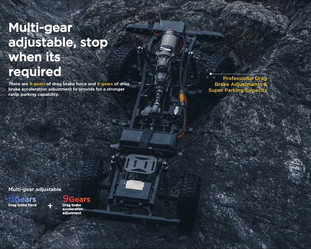 There are 8-gears of drag brake force and 9-gears of drag brake acceleration adjustment to provide for a stronger ramp parking capability.Support three operating modes.