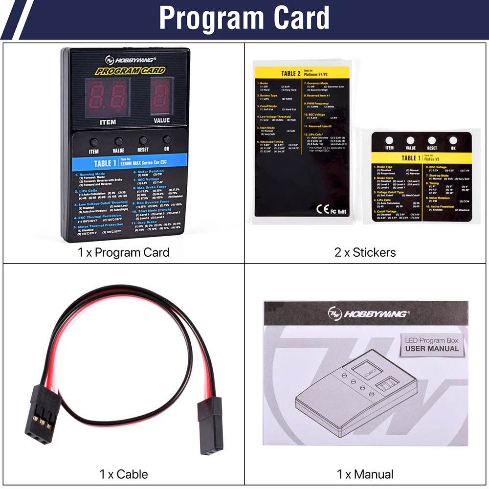 2.HOBBYWING LED Program Card Box for FlyFun V5 XeRun EzRun QuicRun SeaKing Series ESC