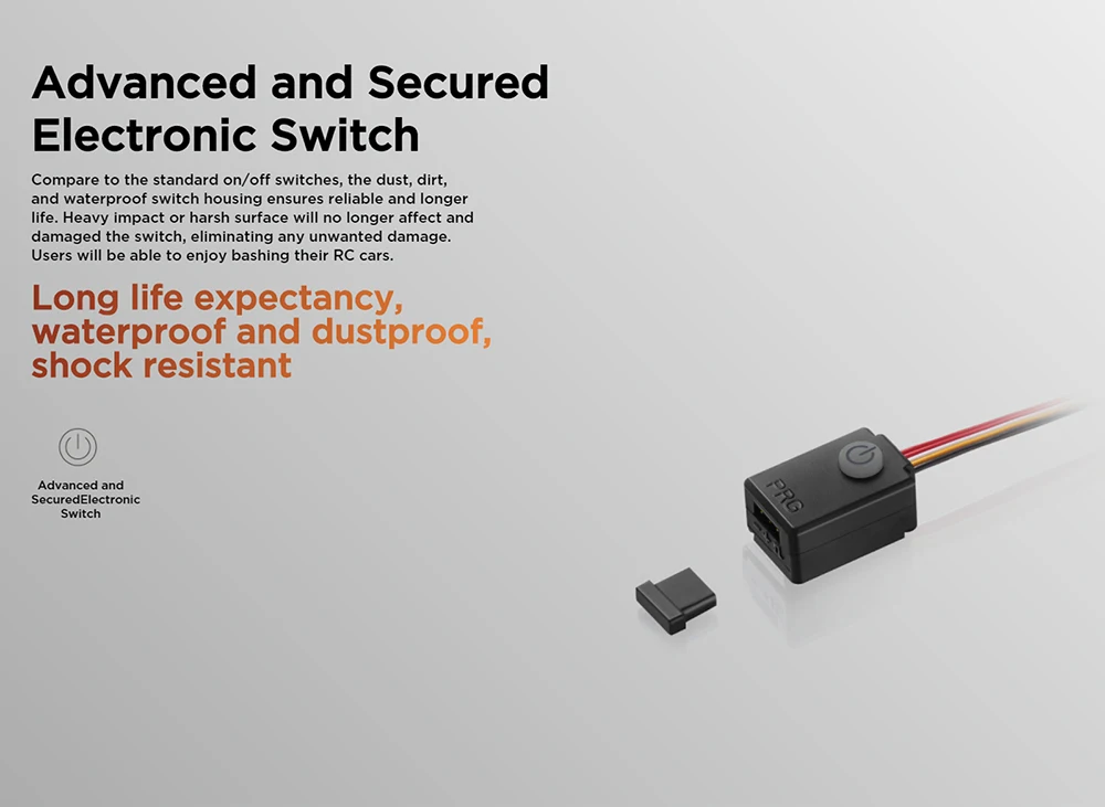 5.Refine Parameter Items:With strong built-in switch mode BEC,the continuous current is up to 6A, and support switch between 6V and 7.4V,easy to drive various powerful steering servo and high-voltage steering servo.It supports LED program box to set ESC parameters,and has independent parameter setting interface,which is integrated on electronic switch,making setting parameters more convenient.