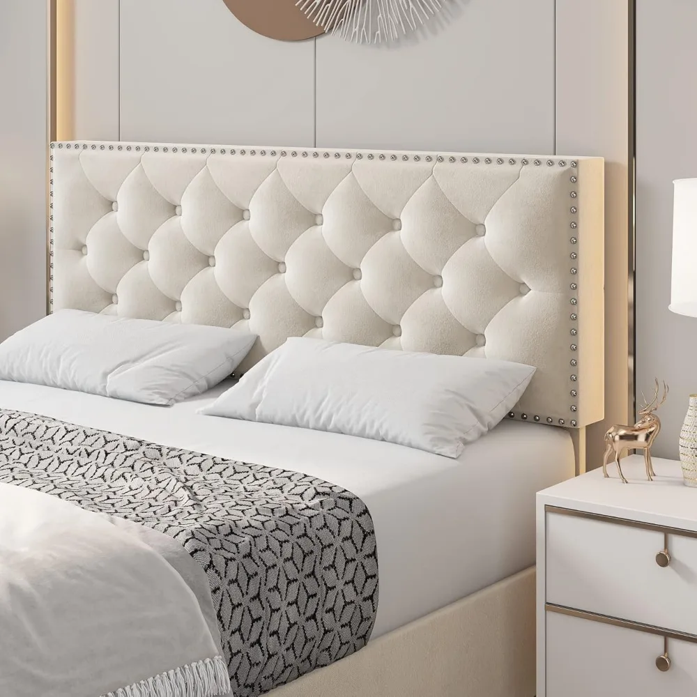 • [Modern Style]: Designed with a classic tufted button headboard and nailhead trim, this bed frame will bring a chic sense of style to any bedroom, while the velvet fabric adds a touch of charm and guarantees excellence and maximum comfort