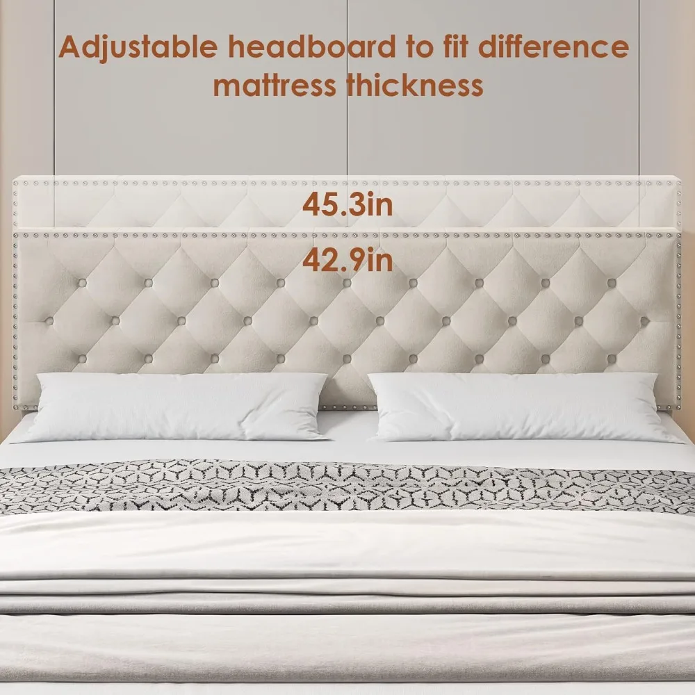 • [Adjustable Headboard]: Come with high-quality Velvet wrapped with high resilience sponge, the padded headboard is comfortable to lean against while reading or watching TV in bed, perfect for lazy mornings and long evenings. The headboard can be adjusted to better fit your mattress from 10” to 13”