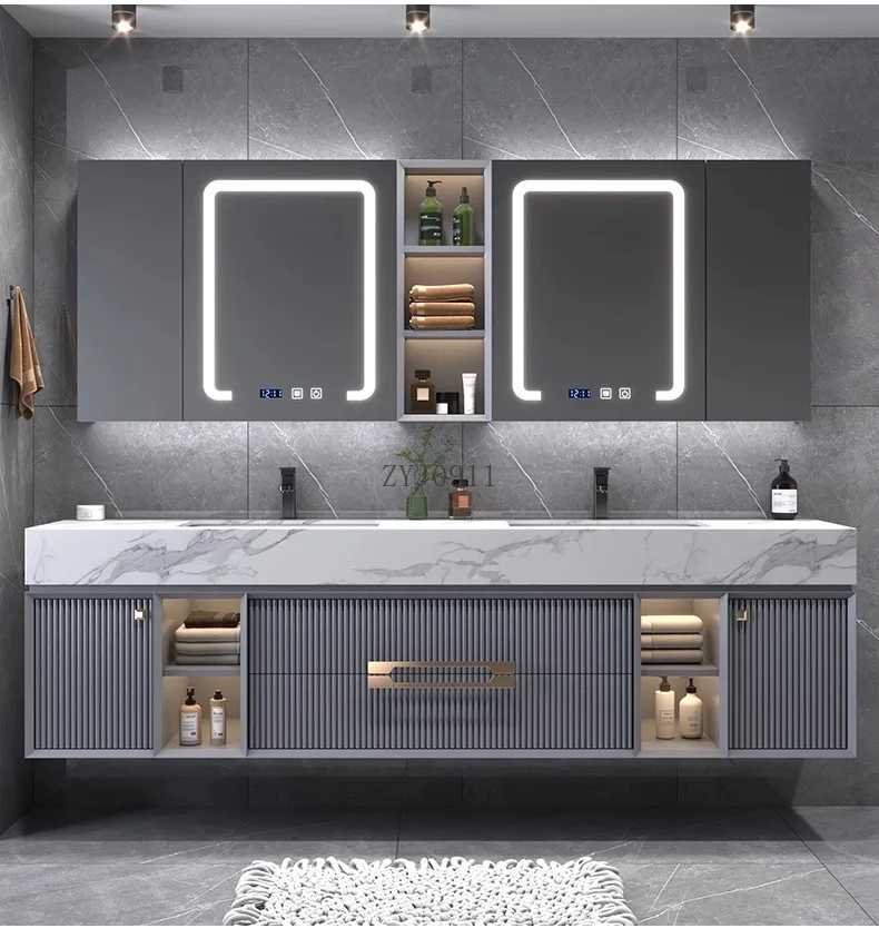 Hot Sale Best Quality Bathroom Double Sink rock stone Vanity Luxury Bathroom Cabinet