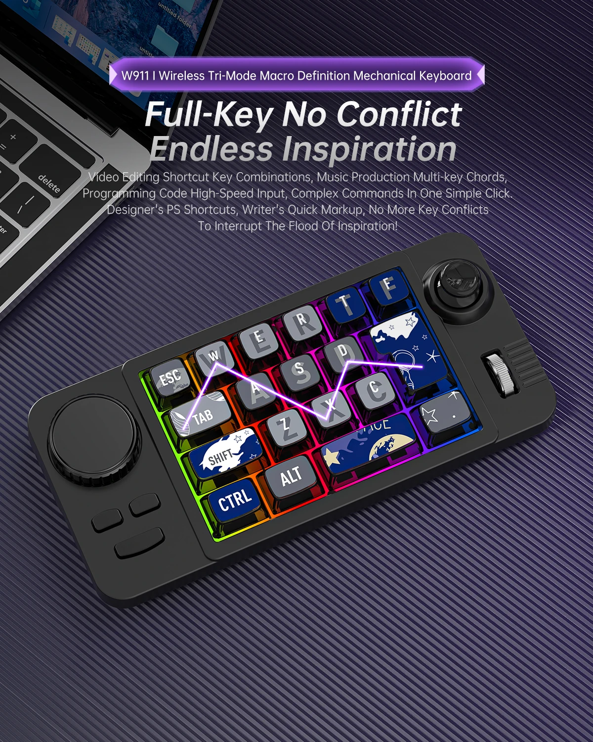 γMouse FunctionγThe numeric keypad is equipped with a new type of mouse function, including a game joystick (which allows the computer cursor to move) and a scroll wheel (which allows the computer's game screen or office software page to move up and down)οΌJust need a W911 numeric keypad to go out without carrying a mouse