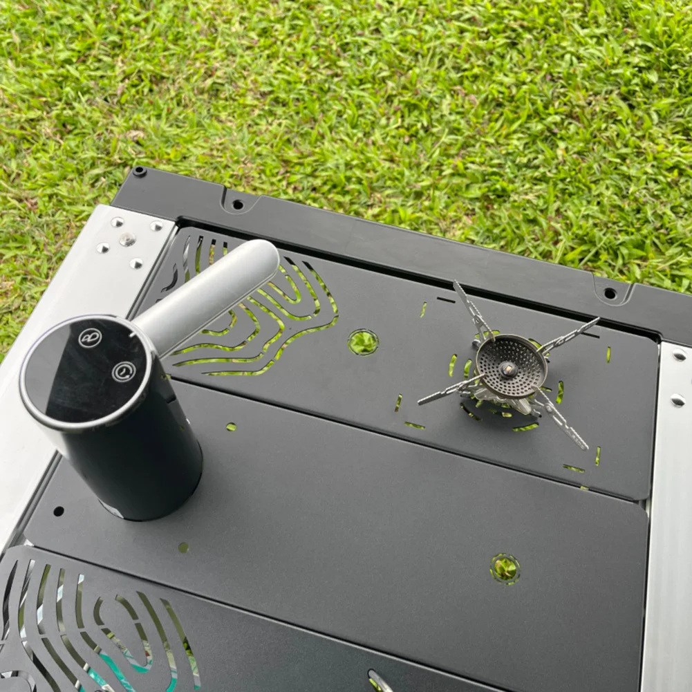 Features: 1.Modular IGT Table Unit Plate: The IGT modular unit plate is designed with a standard 0.5-unit expansion capability, making it suitable for universal IGT table top applications, providing versatility and adaptability in different settings. 2.Flexible Stove Installation: The stove offers high and low position installations to cater to diverse user scenarios, enhancing both convenience and usability for varied outdoor experiences. 3.Compatible with Popular Stoves:Β The recessed low-position stove hole of the camping table board accommodates for models like for CAMPINGMOON XD2F, for Soto 310 OD-1RXN, and for FireMaple's integrated three-jaw stove, ensuring broad compatibility. 4.High-Position Adaptation: For high-position installations, a gas tank adapter is needed for CAMPINGMOON Z03 models. After attaching the adapter, it fits 99.99% of flat gas canister interfaces in the market, offering metal top plate solutions.Β (The adapter needs to be purchased by the user) 5.Carbon Steel Construction: Crafted from thickened carbon steel material, this unit plate is sturdy and reliable, resisting deformation and maintaining integrity over time. Specification: Origin: Mainland China Color: Black Material: Carbon steel Unit board size: 36cm/14.17in * 12.5cm/4.92in * 1.2/0.47in Craftsmanship: Surface spraying (fine matte texture) Net weight: about 366g IGT table compatible: IGT tables of various brands on the market Stove compatible: for CAMPINGMOON XD2F stove, for Soto 310 OD-1RXN Fengshen stove, for FireMaple integrated three-claw stove, etc. Note: This product only sells stove plates, stoves/igt tables and other equipment are only for display and are not included.
