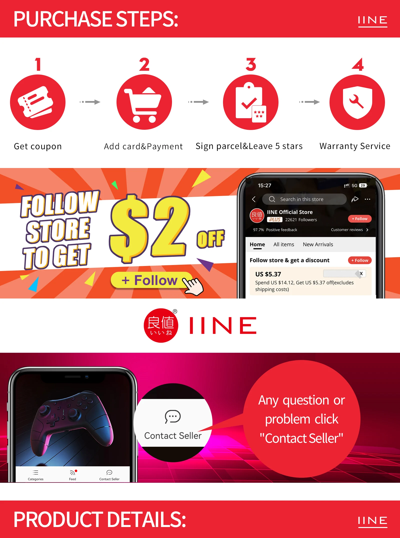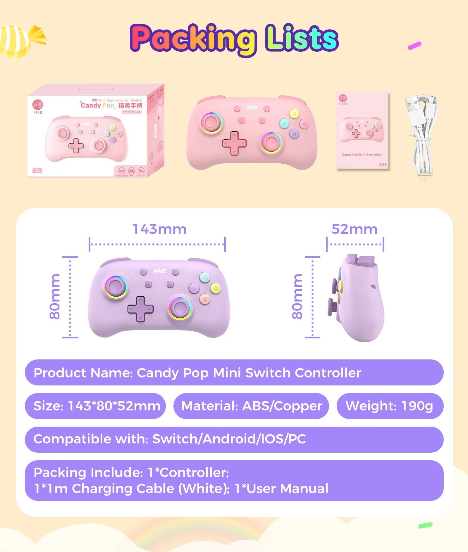 IINE Candy Pop Mini Controller for Switch/PC/iOS/Android/Pad, NFC & Turbo&Macro Function