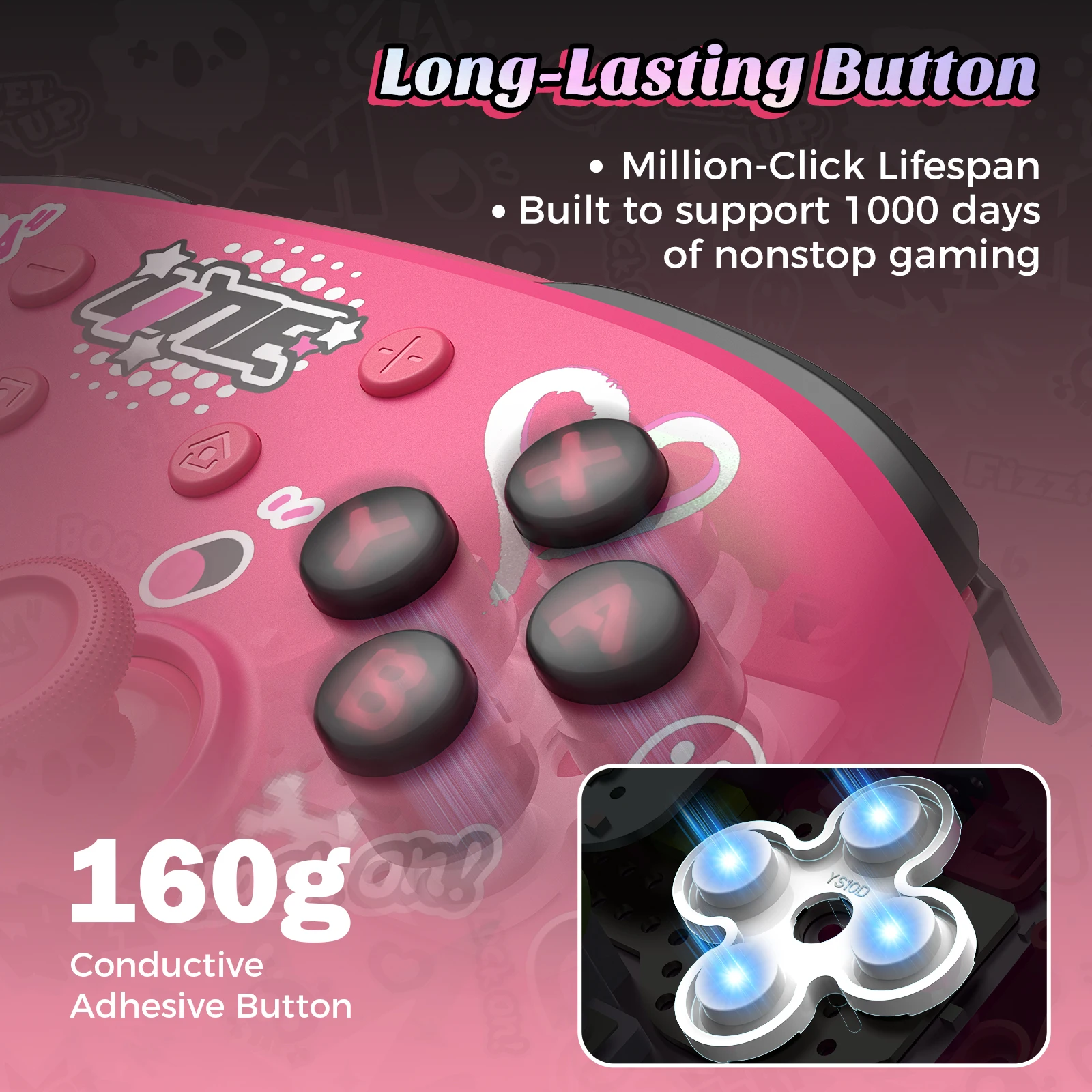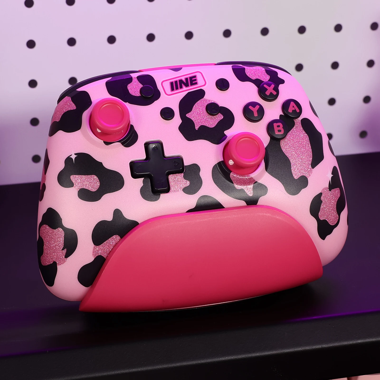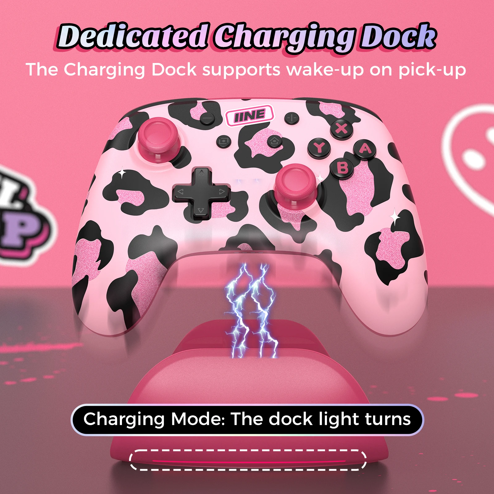 IINE Pink Wireless Controller with Charging Dock for PC/Laptop/Switch/Steam/iPad,support NFC Amiibo Auto-Fire Macro