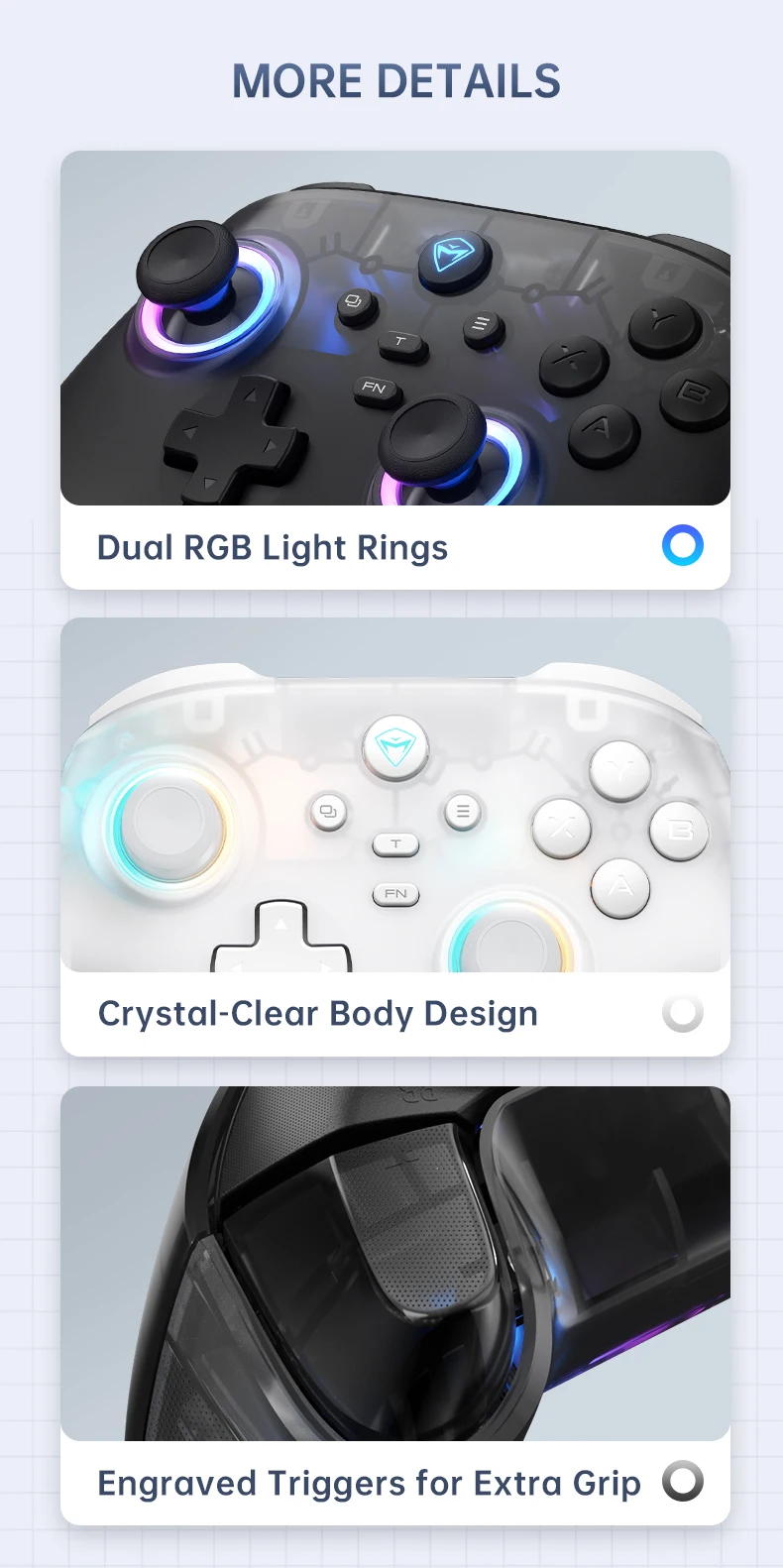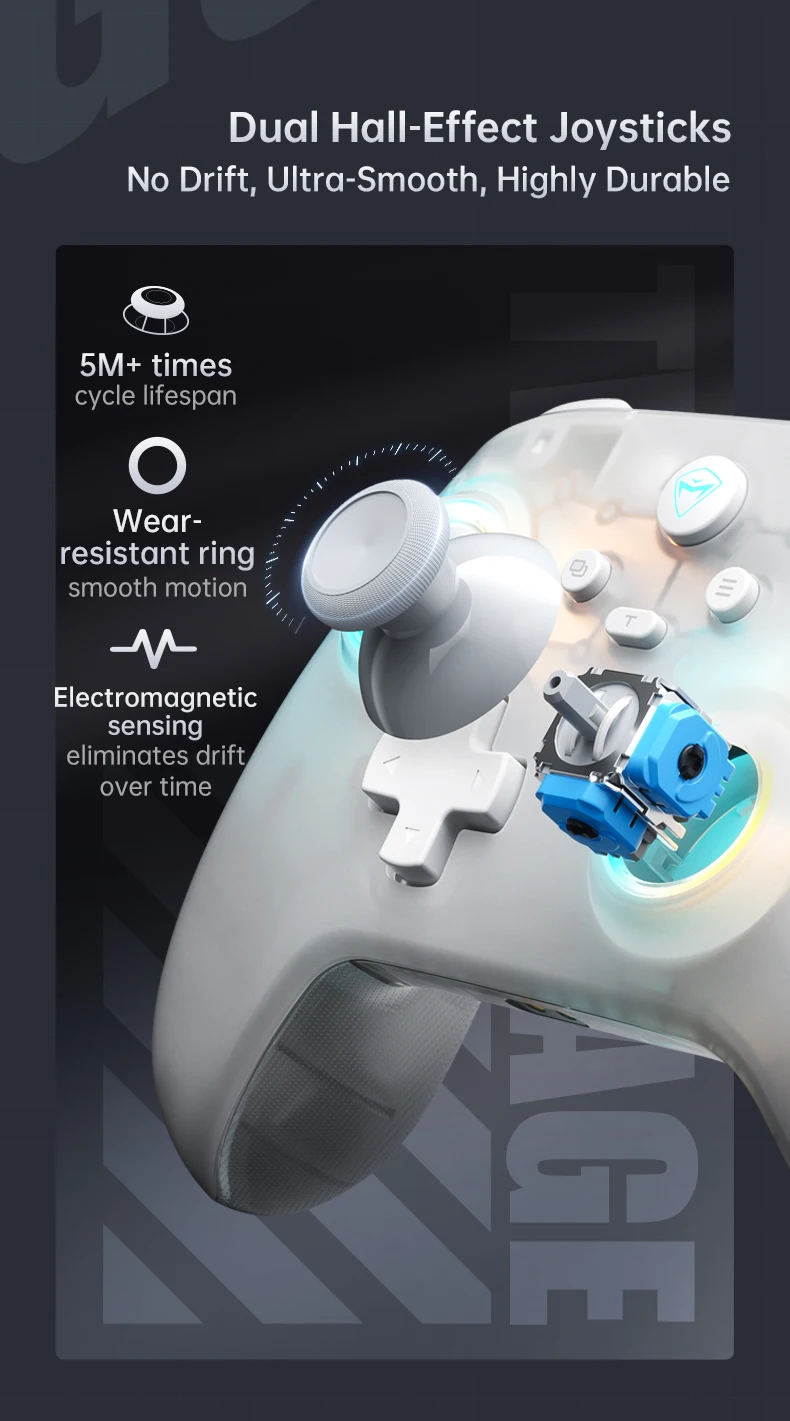 Equipped with dual Hall-effect joysticks & triggers, ensuring precise position tracking and pressure sensitivity for smooth and accurate control.