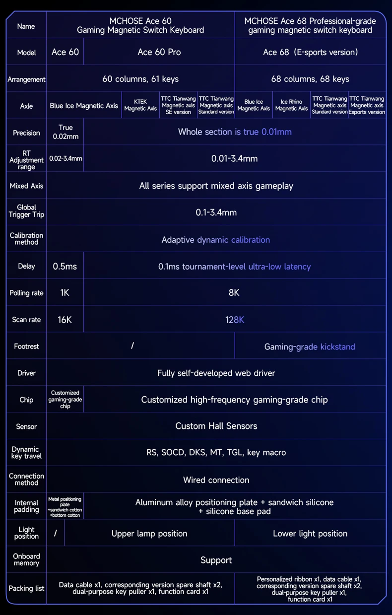 MCHOSE ACE60 Pro ACE68 Esports Wired Mechanical Keyboard Magnetic Switch Hot Swap Customized Gaming Keyboard Pc Gamer Accessorie