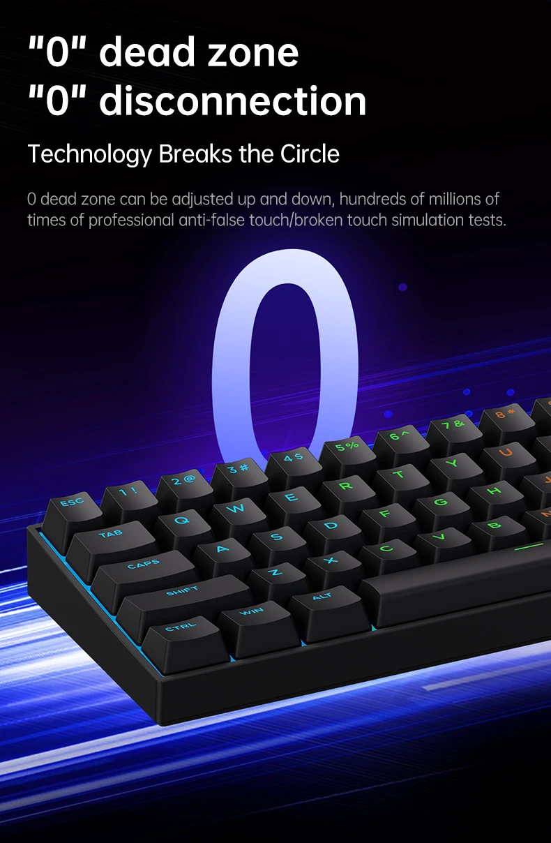 --Cool RGB lighting,16 million color RGB backlight is standard throughout the systemSupport single key lighting custom,And has a variety of RGB preset lighting effects.