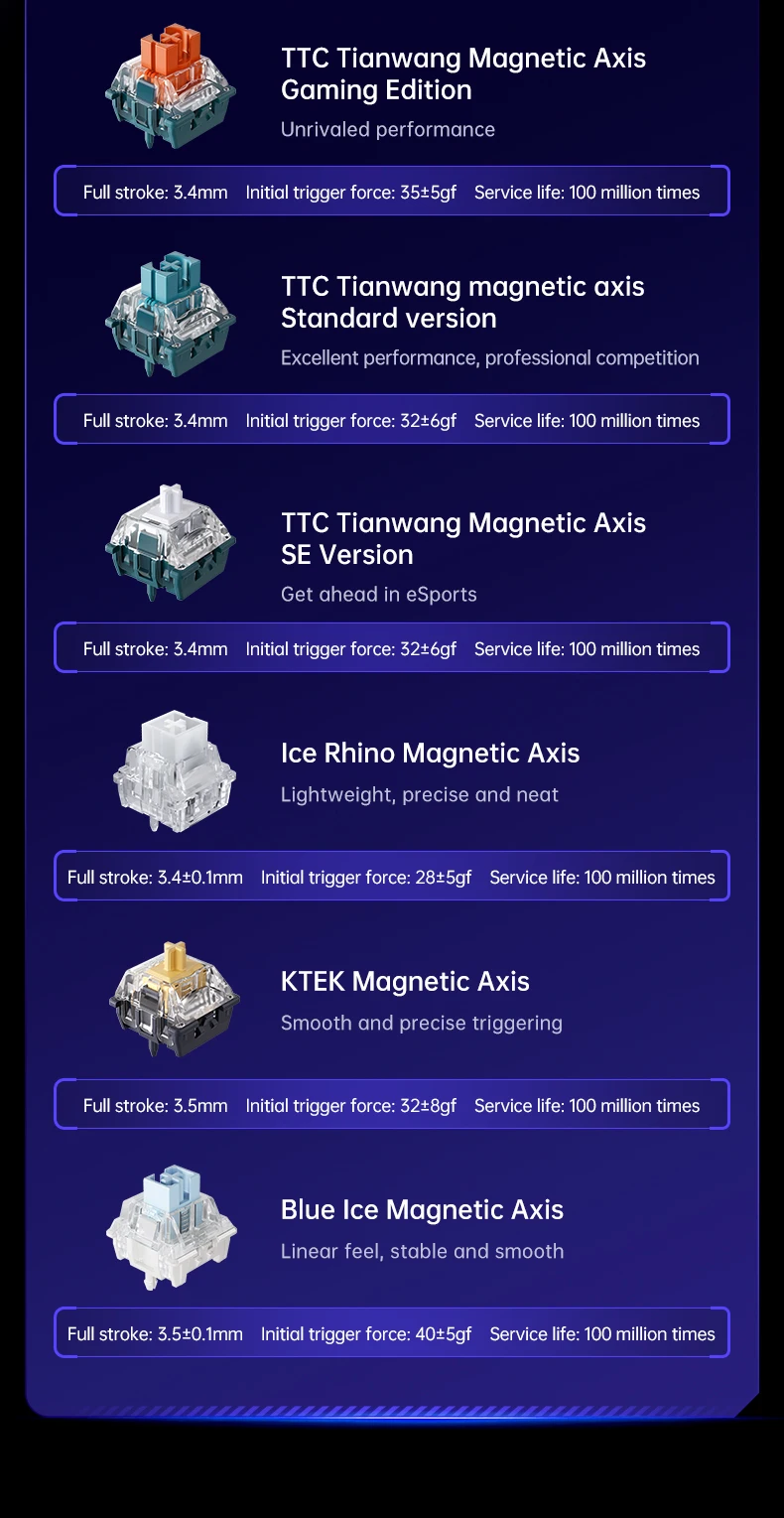 --Magnetic switches, gaming-specific, highest speed response, first choice for gunfighting games.