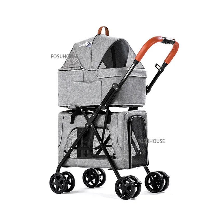 Modern Folding Lightweight Double-layer Pet Trolley Dog Puppy Pet Can Be Detached and Separated for Outdoor Travel Pet Strollers