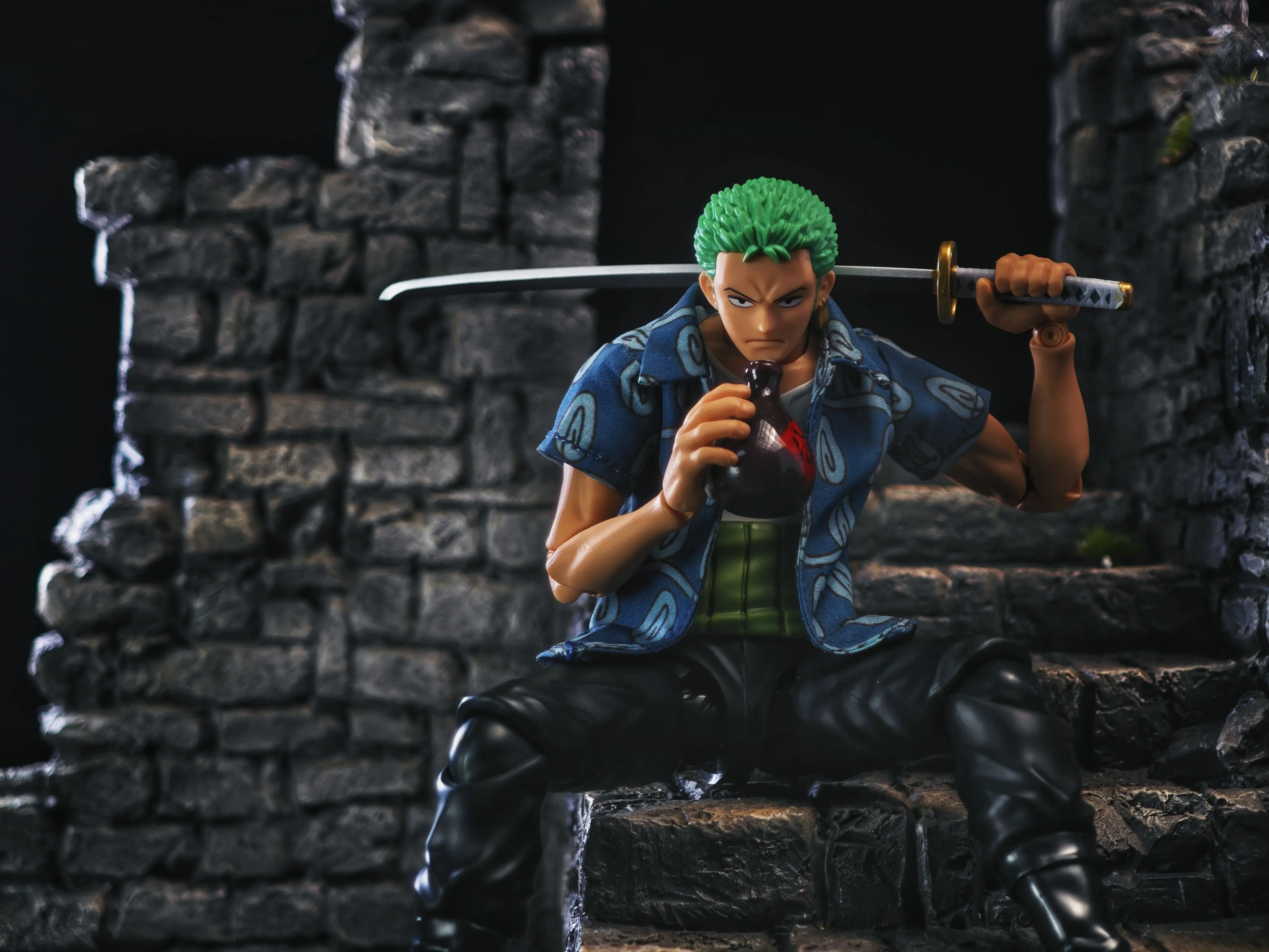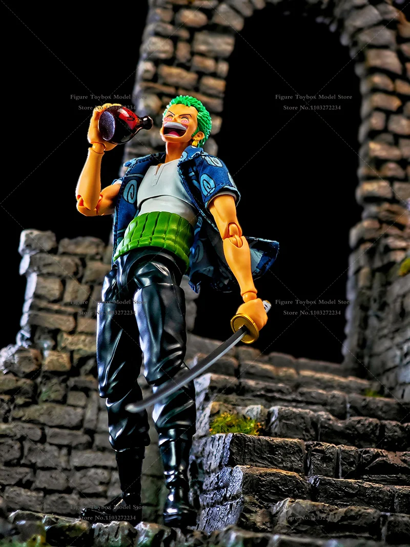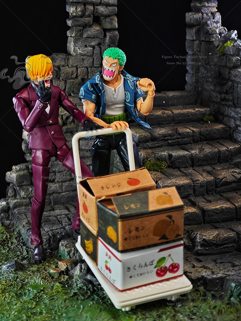 (Only T-shirt ) 1/12 Anime Boy Zoro Soldier Mini Blue Print T-shirt Top Clothes Accessory Toys For 6" Shf Man Figure Decoration